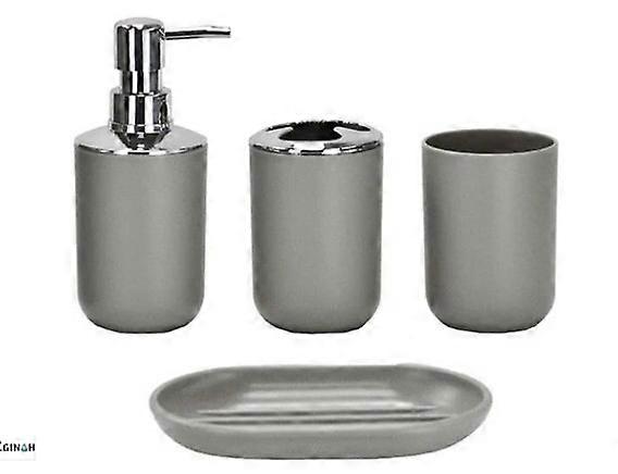 Modern Design 4 PieCes Set Of Bathroom Accessories Lotion Bottles, Toothbrush Holder, Toothcup, Soap Holder, Grey-Four