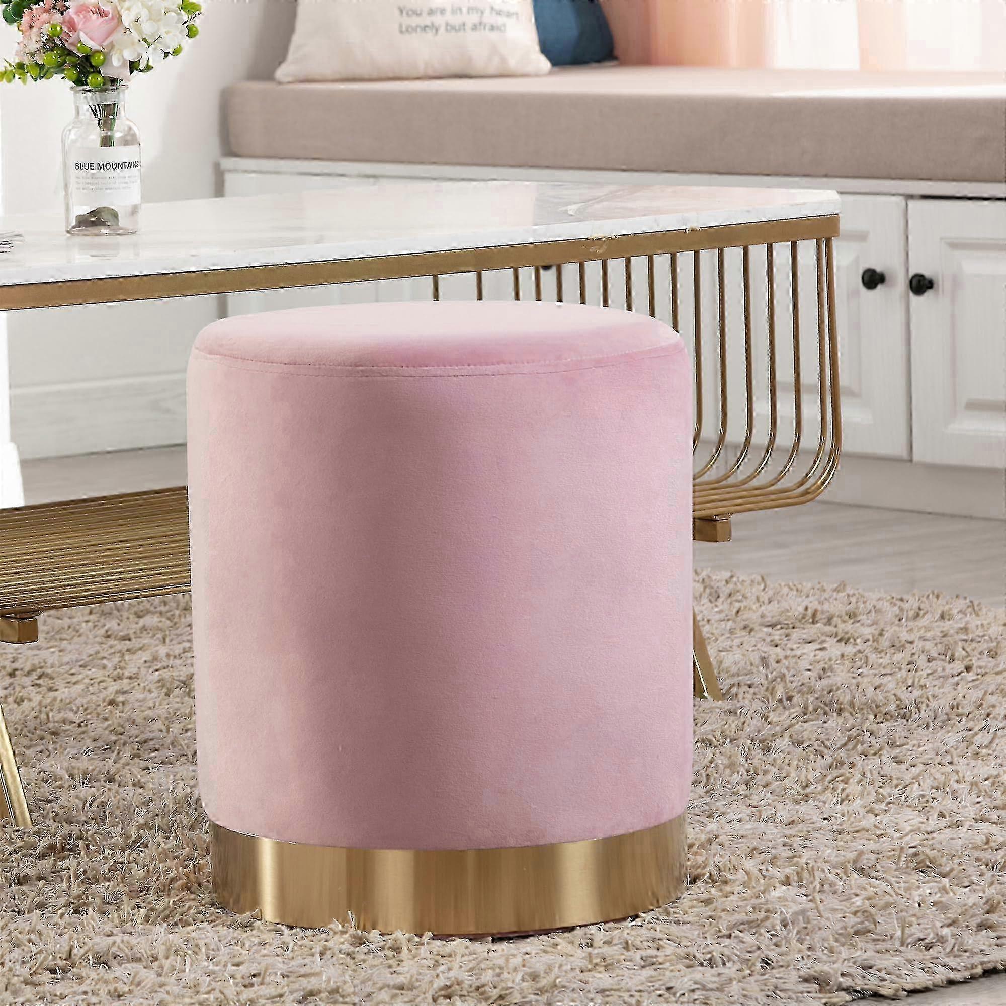 Pack Modern Round Pink Velvet Ottoman for Living Room Bedroom