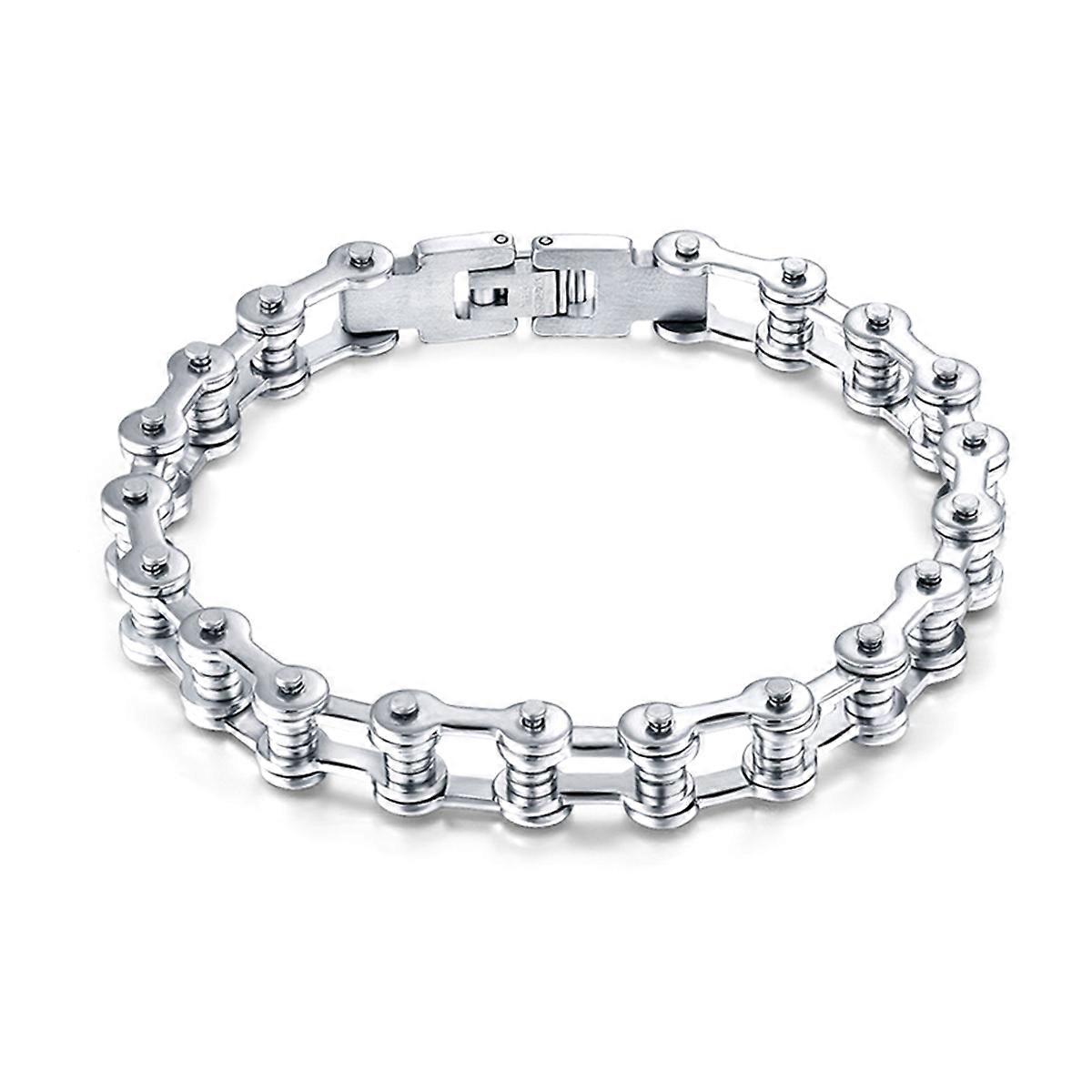 Description This bracelet is made from grade stainless steel with simple and stylish hollow design. Perfect as gift for your beloved one and your familes for many occasions such as holidays, birthdays, anniversaries, etc. Full of great texture and smoothness. Simple and fashion for your personal decor. Wide application in weddings, parties, proms, ceremonies and celebrations, advertising promotions, etc. Feature - Color: As shown in pictures - Material: Stainless steel - Size: Approx. 22 * 0.8 * 0.5 cm/ 8.66 * 0.31 * 0.2 inch (L*W*H) - Handcrafted with stainless steel and silicone for strong supporting and durable use. - Comfortable to wear with smooth surface. - Stylish and simple hollow design, great and fashionable jewelry decoration for men and women. - Easy to wear and take off with the fold-over clasp. - Unisex jewelry accessories. Perfect gift for your dad and mom during Father's Day and Mother's Day or for your beloved in Valentine's Day. - Also nice decoration for application in weddings, parties, proms, ceremonies and promotional gifts for celebrations, advertising promotions, etc.Package list: 1 * Modern Refined Stainless Steel Bracelet Bike Chain Design for Men and Women Link Chain All-match Wristband Bracelet Link for Unisex Jewelry Making