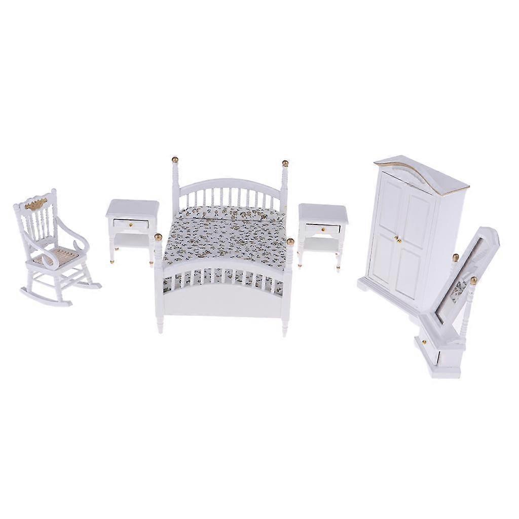 Modern 1/12 Bed Wardrobe Chair Table Model Dolls House Bedroom Furniture 6pc