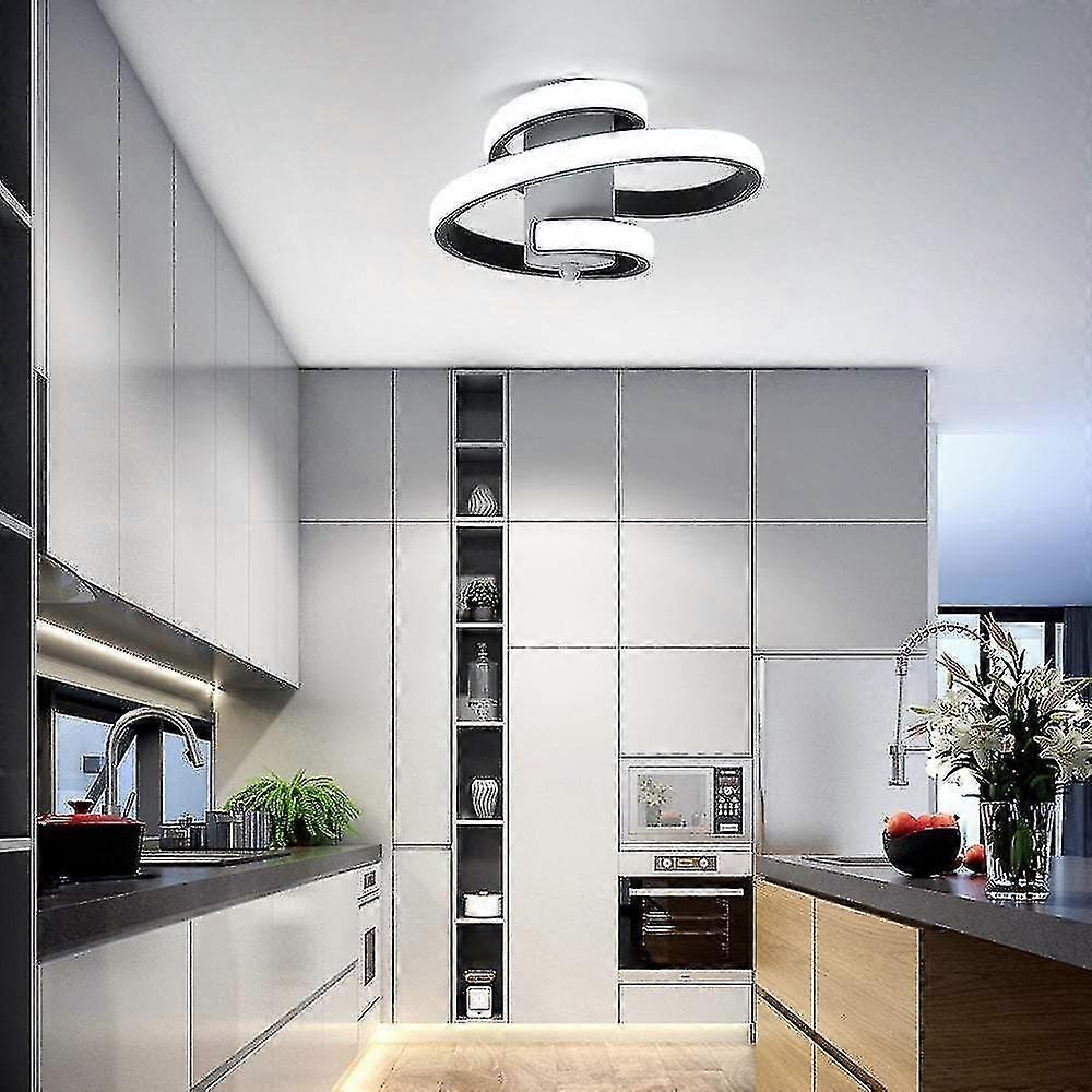 [Creative Design]: LED ceiling light unique spiral ribbon design, the spiral lamp arm is installed on top of the circle, it will illuminate your space with style and stand out among your current decorations.[Size]: the size of the black ceiling light is L23 * W21 * H10CM, material: aluminum and acrylic. Power: 24W, LED light source, high brightness and long life. Lighting range: 5 -10.[High quality]: Lamp body made of metal (aluminum iron), surface paint treatment. Shade material is acrylic, high light transmission, environmental protection, no rust, uniform colour, better protect your eyes.[Built-in LED card]: The ceiling light comes with a built-in LED board of 24 Watt and 1800 Lumen. Enjoy a powerful cold white light of 6000 Kelvin for a bright and welcoming atmosphere in your living spaces.[Application Large]: The modern ceiling light adopts a simple design style and is perfect for indoor lighting. Black chandelier suitable for living room, bedroom, dining room, kitchen, children's room but also entrance and hallway.
