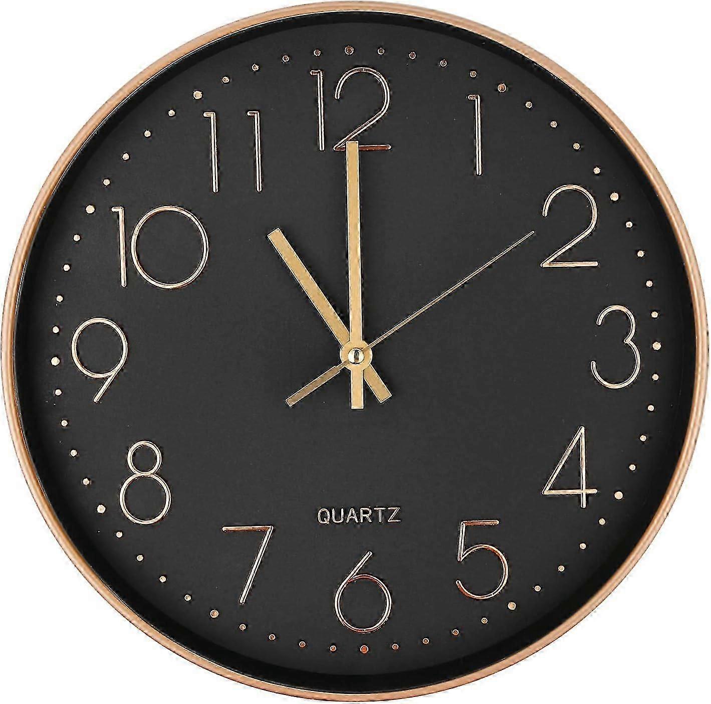 Modern Silent Quartz Wall Clock 25cm, Oversized Numbers Round Wall Clock (Rose Gold)