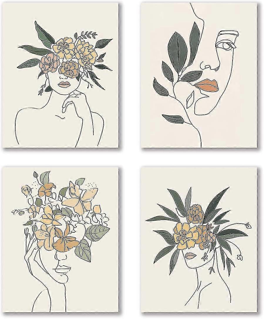 Modern Minimalist Fashion Pop Women Prints Flower Wall Art Painting Set Of 4 8x10 Canva