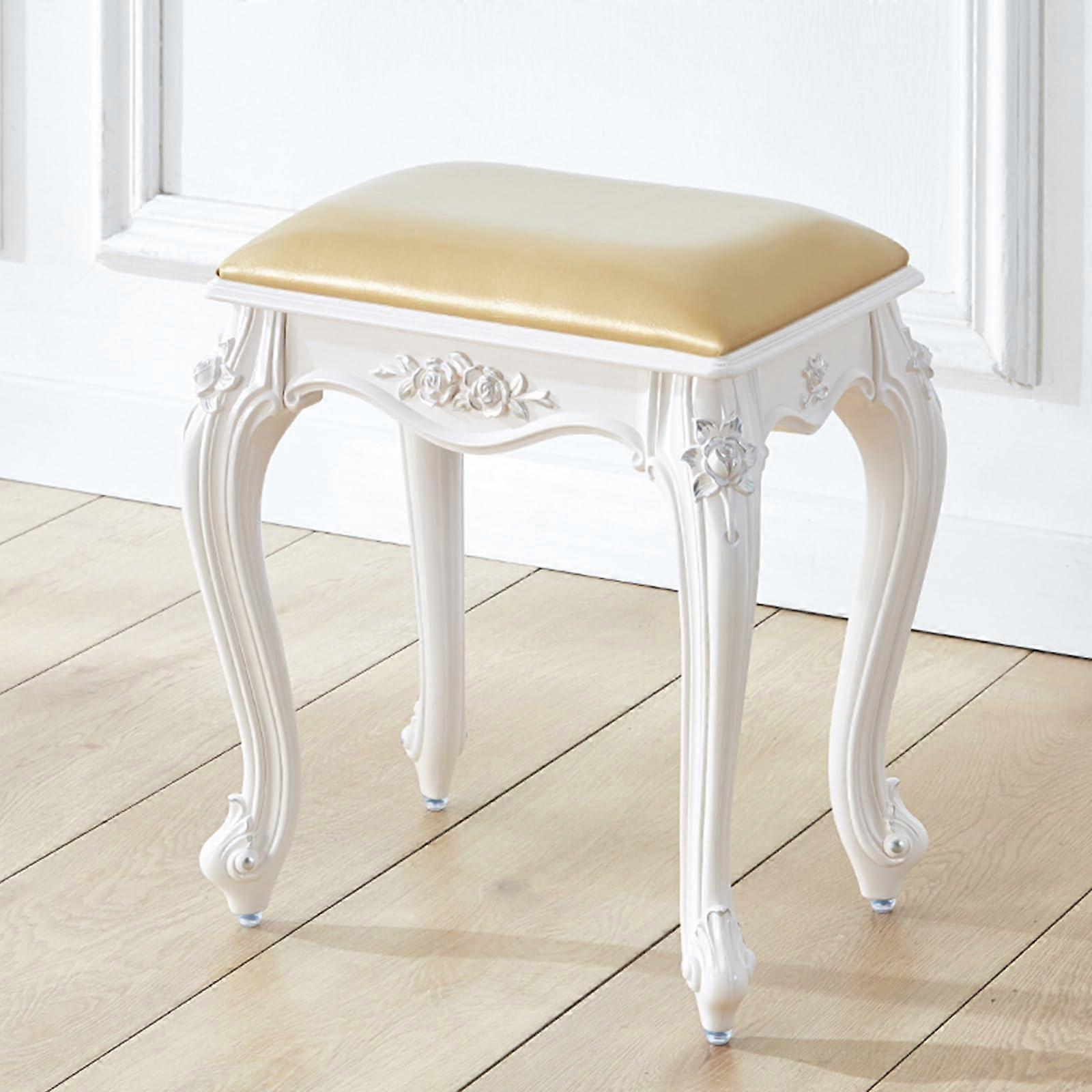 Modern Makeup Stool PU Leather Vanity Chair High-Density Sponge Cushion Silver Makeup Chair 150 Kg Load Capacity