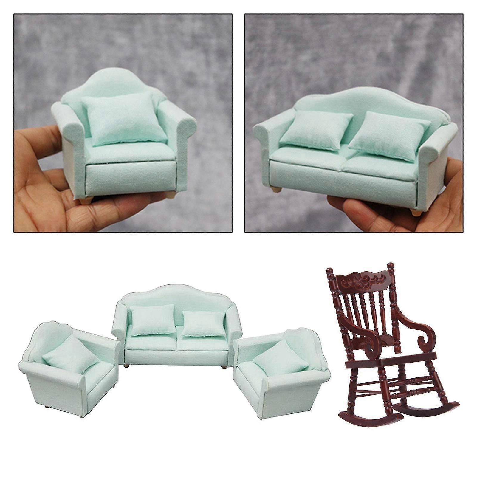 Modern 1:12 Scale Dollhouse Wooden Rocking Chairs & Sofa Set Furniture Decor