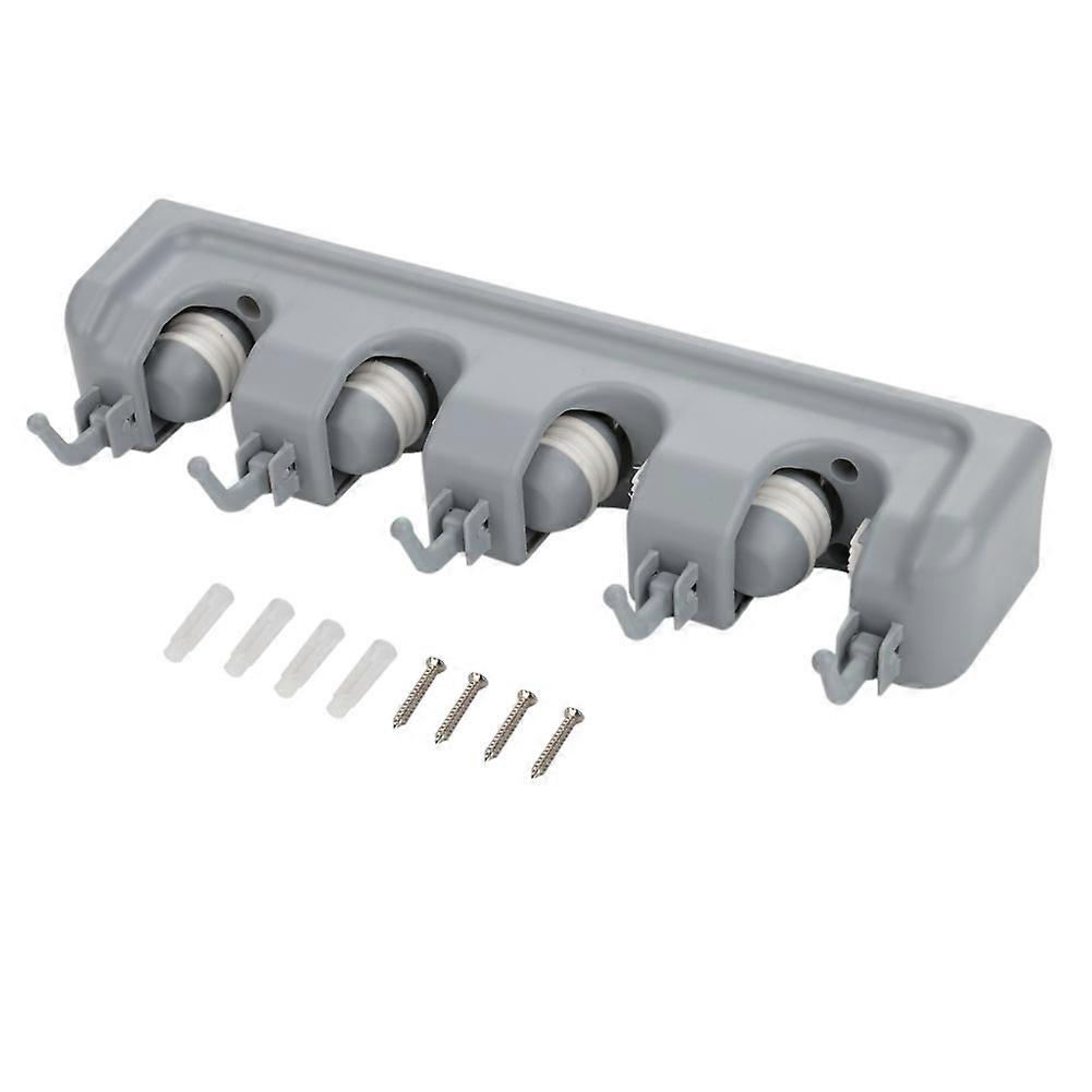 Mop and Broom Holder Rack Wall Mounted Tools Storage Organizer Home Use 4 Position 5 Hooks