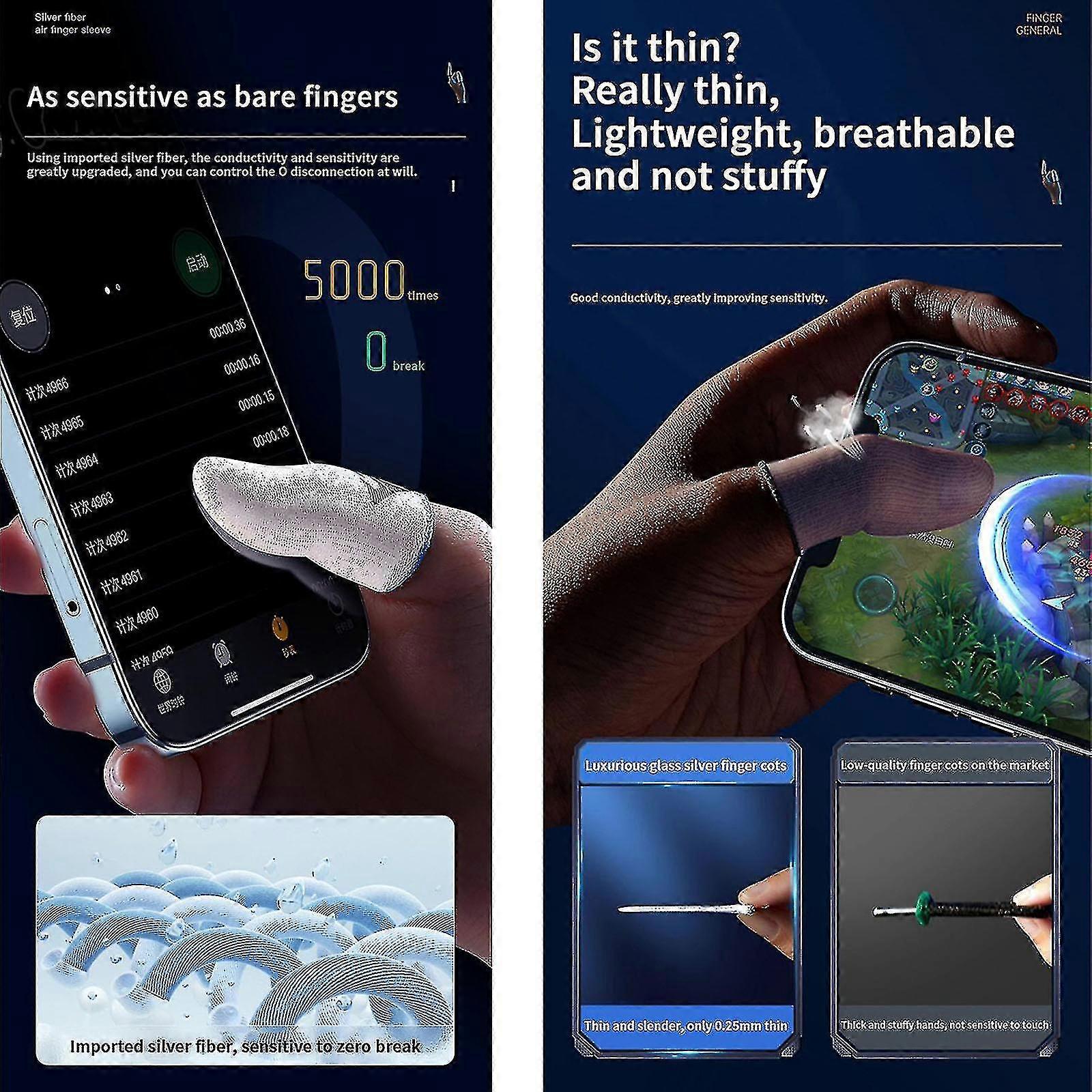 Gaming Finger Sleeves For Mobile Gaming 0.25mm Glass Silver Fiber Seamless Thumb Fingertip Cover For Pubg/cod/lol/ros