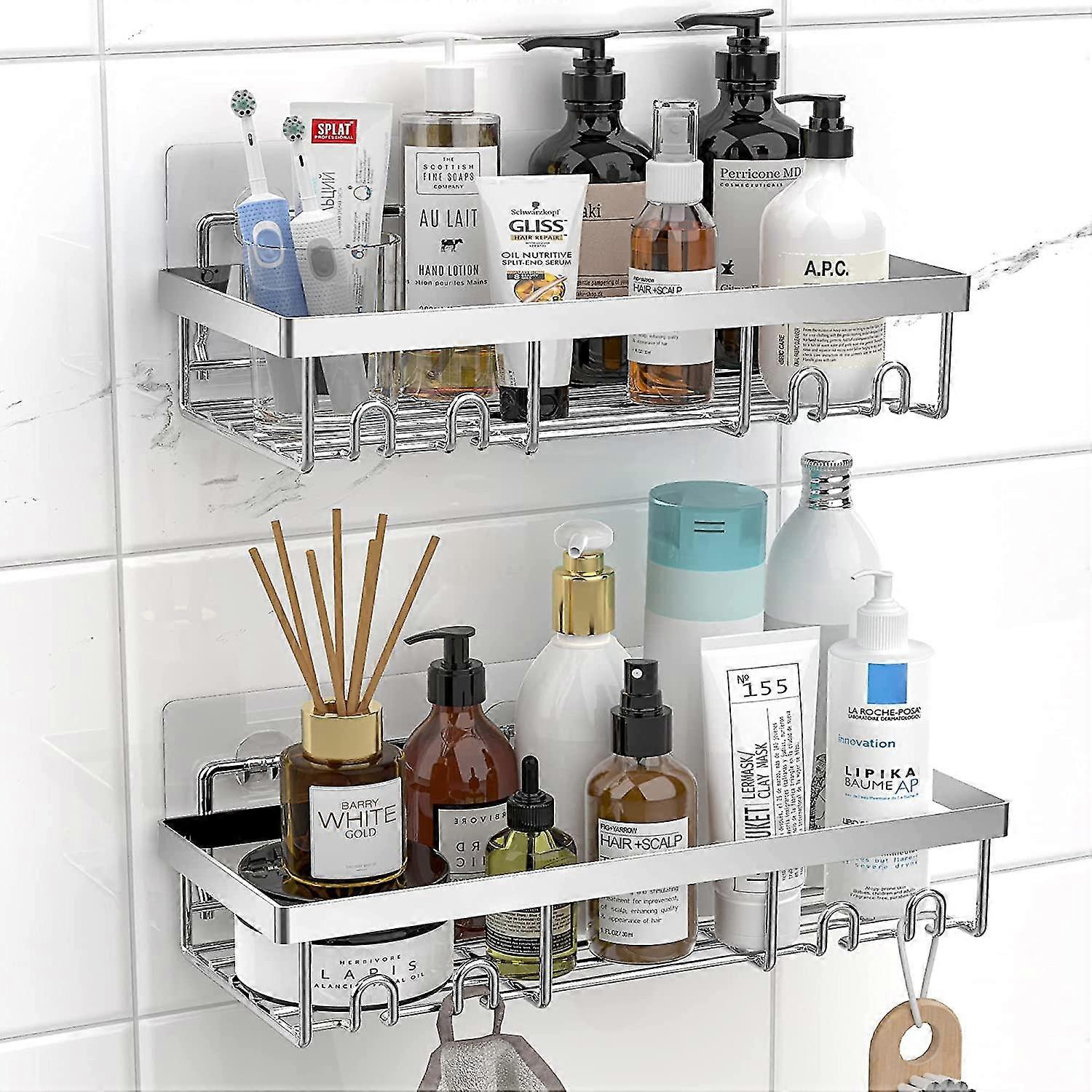 Moforoco Shower Caddy Shelf Organizer Rack(2pack) Self Adhesive Black Bathroom Shelves Basket Home Wall Shower Inside Organization And Storage Decor
