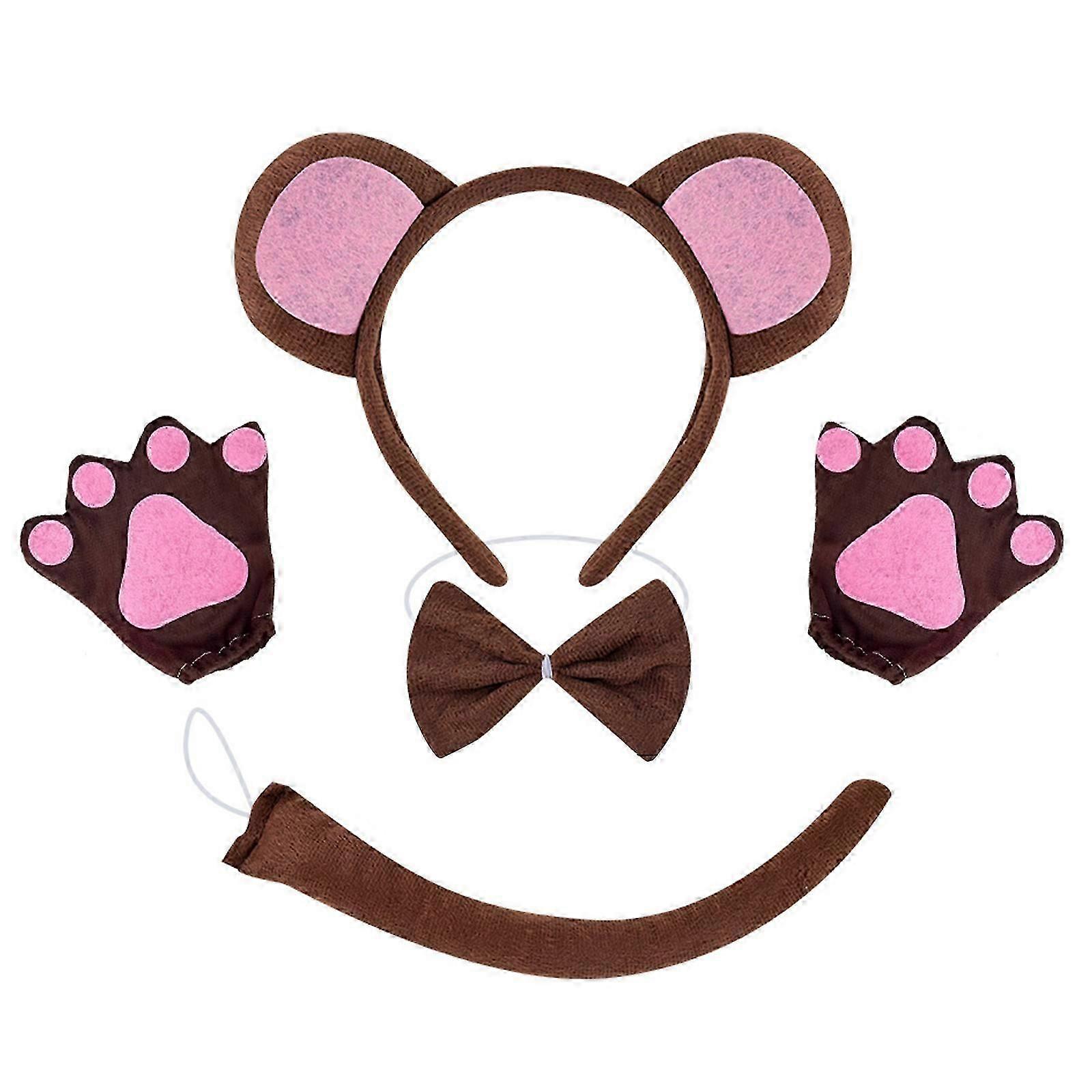 Monkey Costume Set with Monkey Tail Bowtie Glove and Headband Halloween Animal Dress up Outfit for Kid Birthday Cosplay