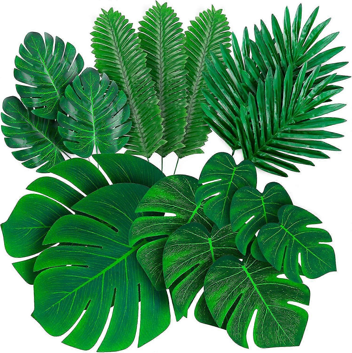 Palm Leaves Artificial Tropical Monstera-84pcs 6 Kinds Large Small Green Fake Palm Leaf With Stems For Hawaiian Wedding