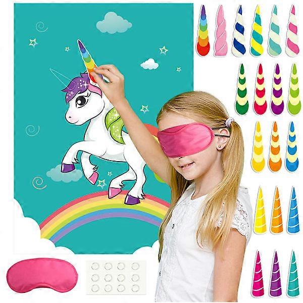 Pin the Horn on the Unicorn - Party Game with 34 Horns for