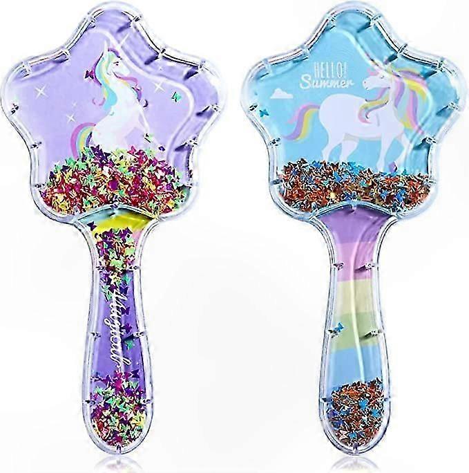 Kids Hair Brush Set with Unicorn Design, 2-Pack (Blue, Purple), Soft Bristles for Children and Girls