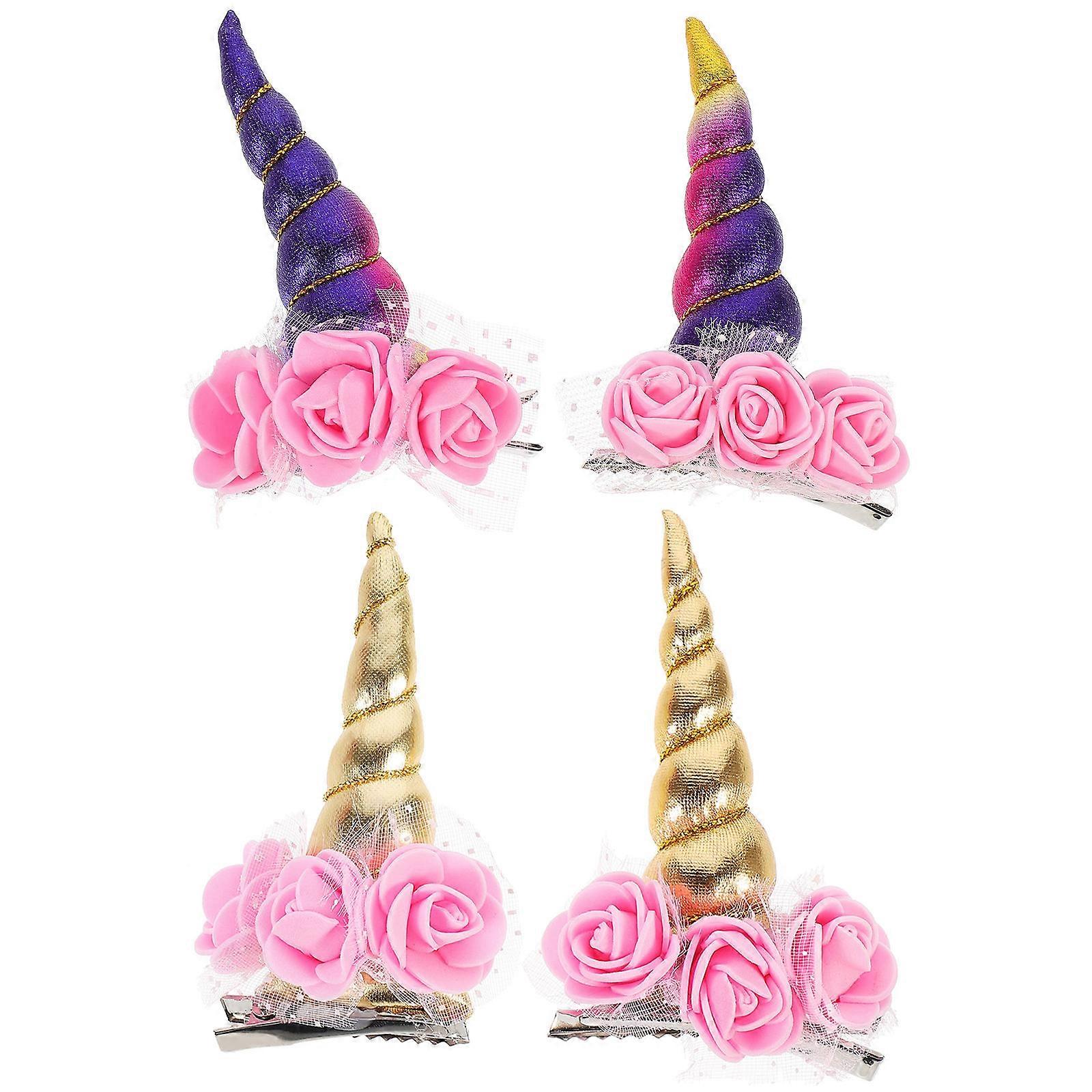 Unicorn Horn Hair Accessories Multicolor 10.00X7.00X2.00CM Halloween Party Baby Girls Fashionable 2Pcs