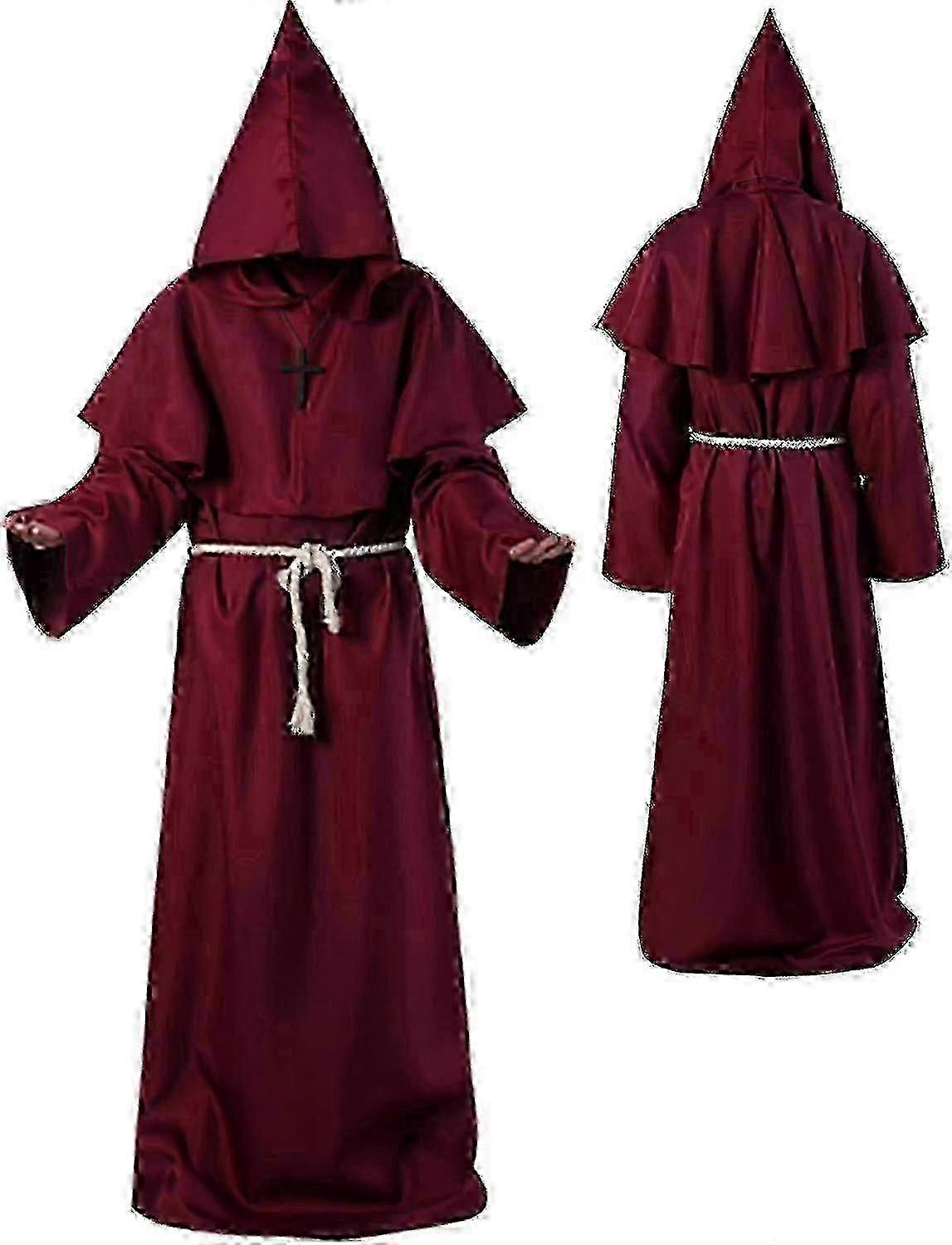 Unisex Adult Medieval Robe Costume Hooded Robe Cloak Friar Priest Wizard Tunic Costume 3pcs