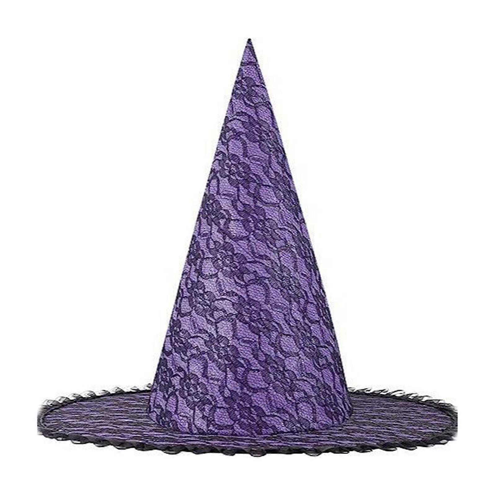 Unisex Halloween Peaked Witch Hat with Shinning Tinsel Wizard Hat Men Women Cosplay Witch Hat Festivals Party Props Purple