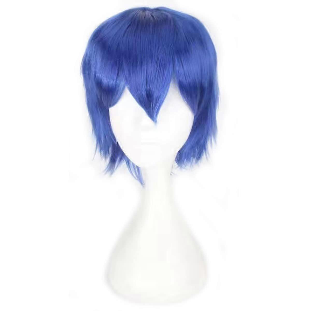 Unisex Anime Short Dark Blue Cosplay Wig With Bangs Heat Resistant Hair for Women Mens Boy