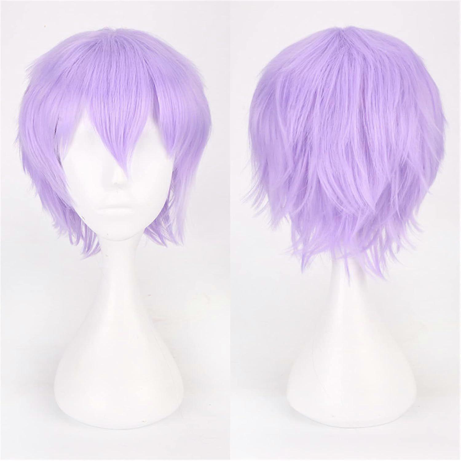 Unisex Anime Light Purple Short Hair Wig Cosplay Anime Wig Fluffy Layered