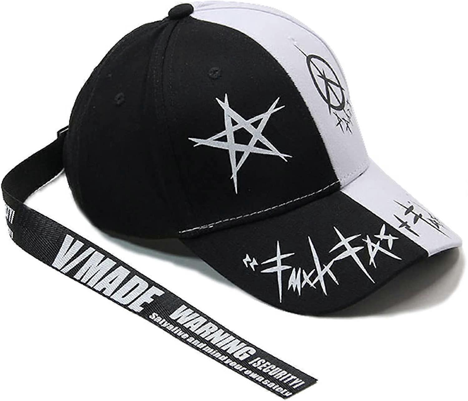 Unisex Graffiti Baseball Cap, K-pop Boys Outdoor Snapback HatBlack White Hiphop Hat, Dad Hat, Trucker hat for Men Women Without Iron Ring With Streame