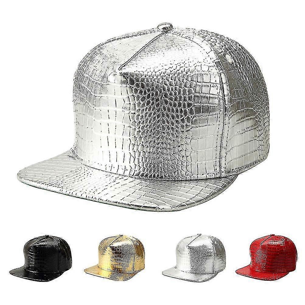Unisex Crocodile Caps Pu Adjable Flat Brim Hats Snapback (silver)