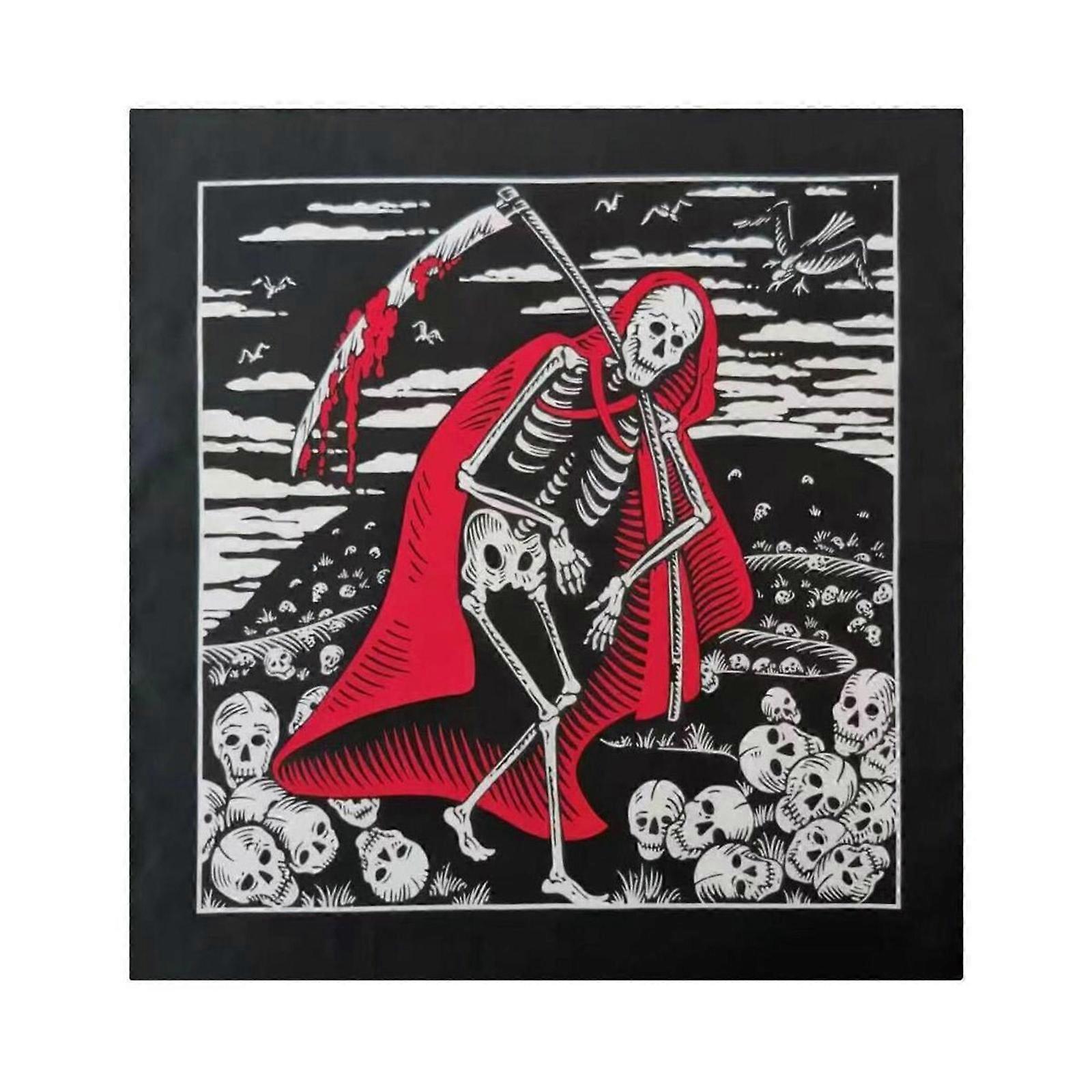 Unisex Turbans Head Scarf Headwear Square Hair Scarves Creative Head Wrap Elaborate Skeleton Pattern Hair Cover Wrap Black