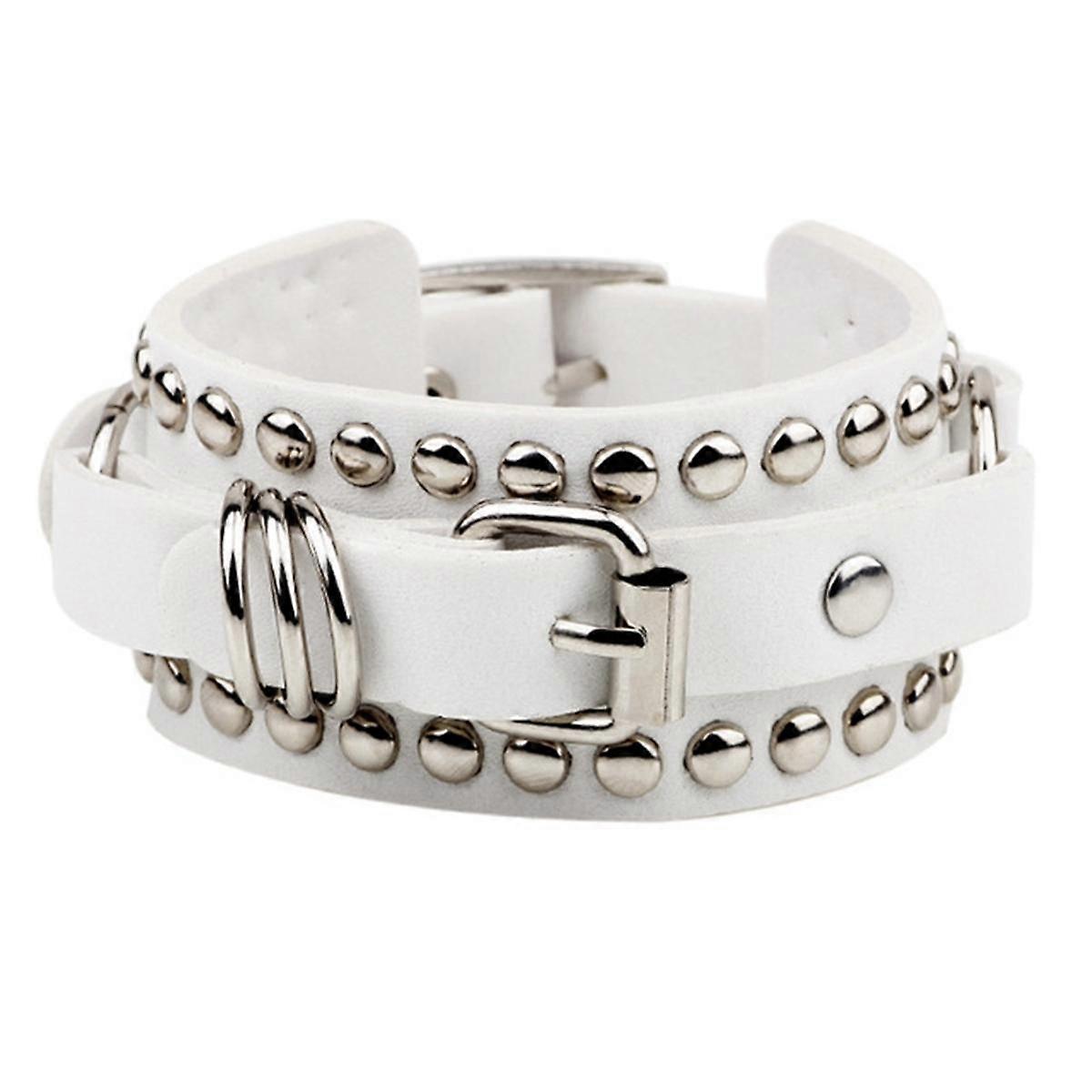 Unisex Punk Rocker Bracelet Gothic Leather Cuff with Spikes Rivets Studs Adjustable Wristband for Cosplay Fashion-A