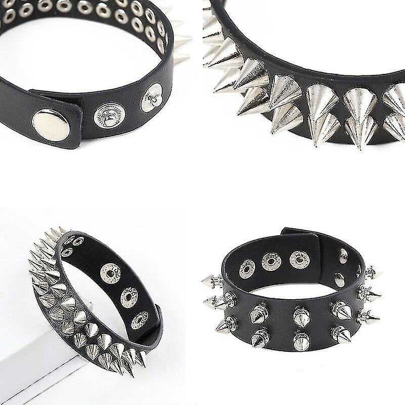 Unisex Black Faux Leather Punk Rock Bracelets With Studded Rivet Wristband