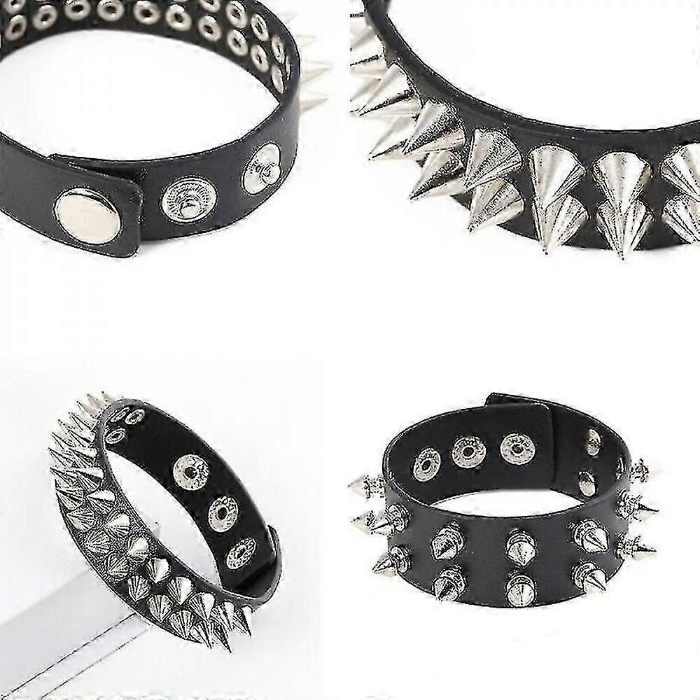 Unisex Black Faux Leather Punk Rock Bracelets with Studded Rivet WristbandFeatures:brand new and high qualityMade of high quality faux leather and metal, durable, soft and comfortable to wear.Wide faux leather bracelet with rivet decor and adjustable snap button.Fashionable punk rock design, great for rocker costume or your daily outfits.Perfect gift for yourself, your significant other or other special person on special day.Specifications:Material: Faux LeatherColor: Black+SilverOptional Style: A,B,C,D,ETotal length: approx.23cm(9.06in)Quantity: 1 pcNote:Transition: 1cm=10mm=0.39inchNo retail package.Please allow 1-3cm error due to manual measurement. pls make sure you do not mind before you bid.Due to the difference between different monitors, the picture may not reflect the actual color of the item. Thank youPackage includes:1 x Wristband Bracelet(other accessories demo in the picture is not included.)