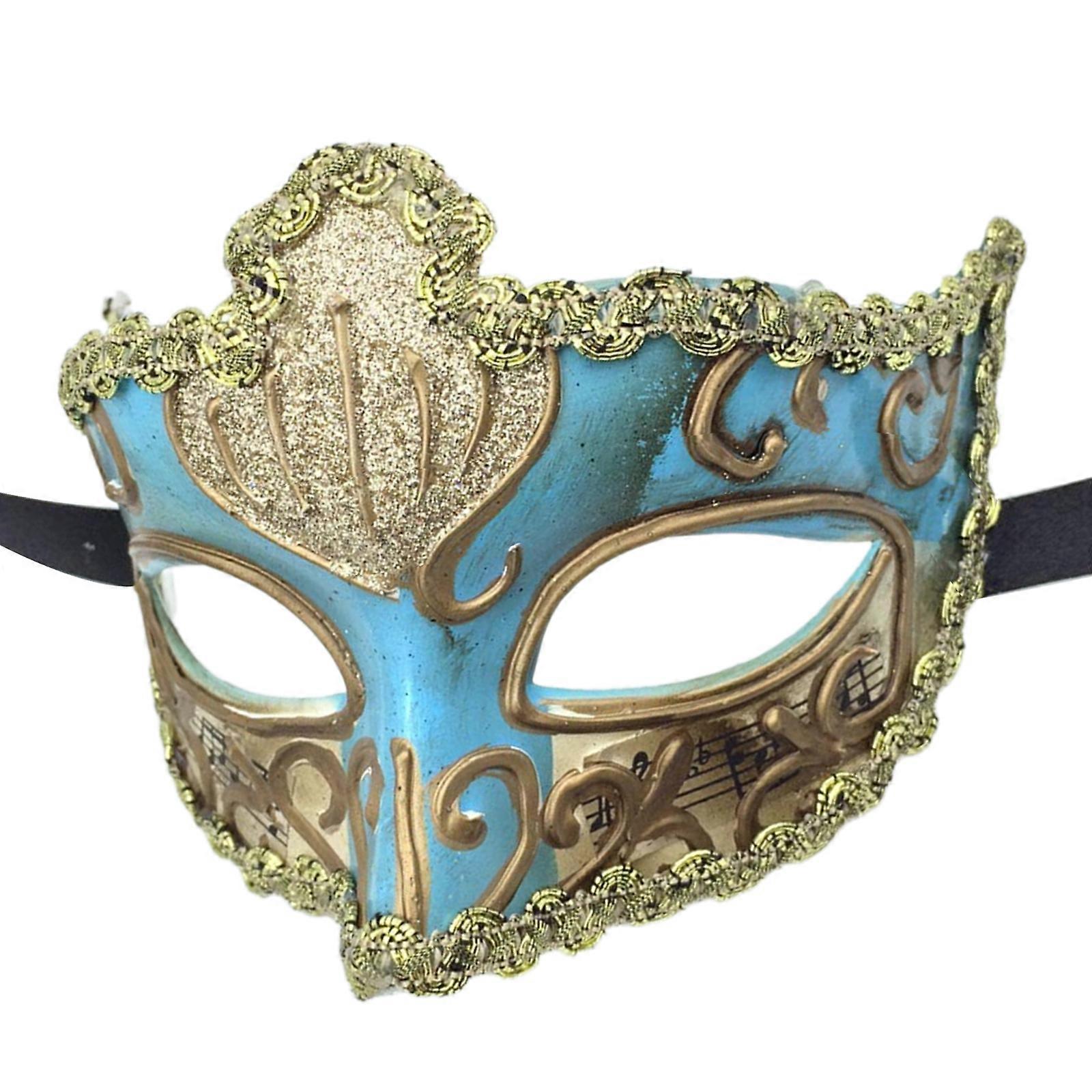 Unisex Masquerade Mask Half Face Mask Halloween Party Mask Hand Painted Masquerade Eye Mask For Men Women Cosplay sky blue
