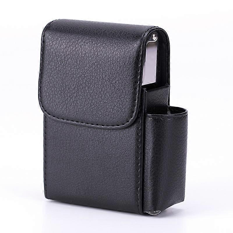Unisex Mens Womens Pu Leather+stainless Steel Cigarette Box Case With Lighter Holder(1pcs, black)