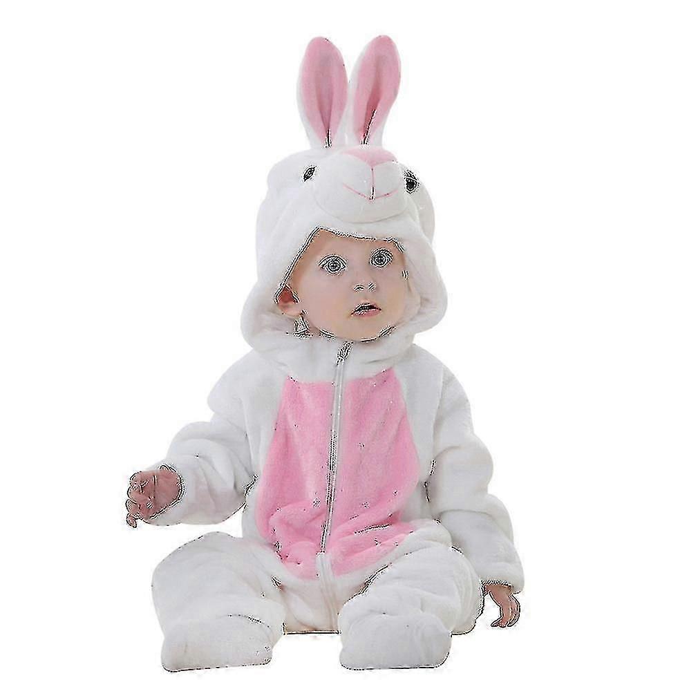 Unisex Animal Costume Flannel Hooded Jumpsuit 90 Rabbit