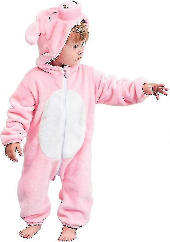 Unisex Animal Costume Flannel Hooded Romper Jumpsuit 6 12 Months Pink