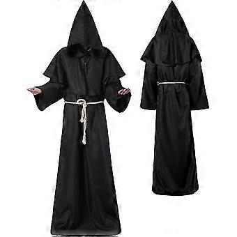 Unisex Adult Medieval Robe Costume Monk Hooded Robe Cloak Friar Priest Wizard Halloween Tunic Costume 1pcs