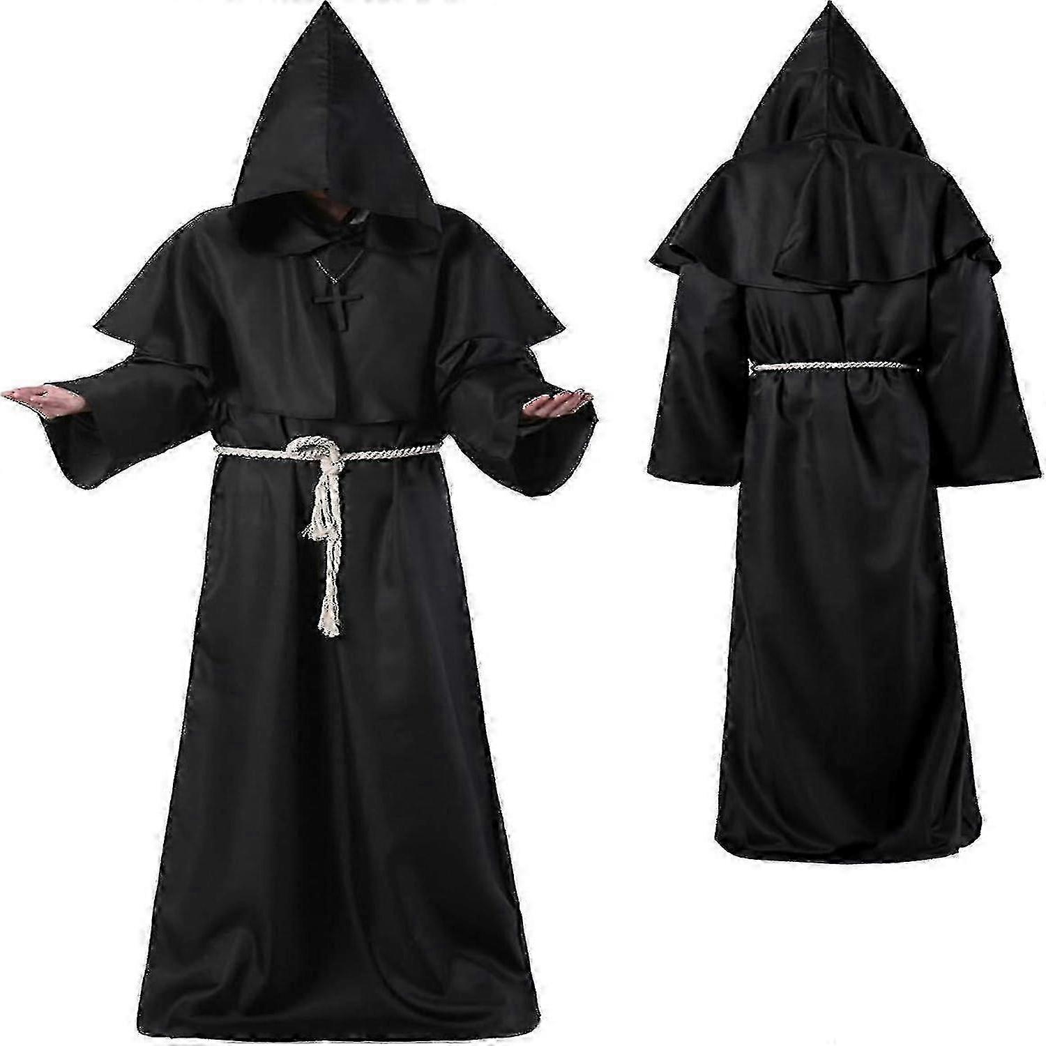 Unisex Adult Medieval Robe Costume Monk Hooded Robe Cloak Friar Priest Wizard Halloween Tunic Costume 1pcs