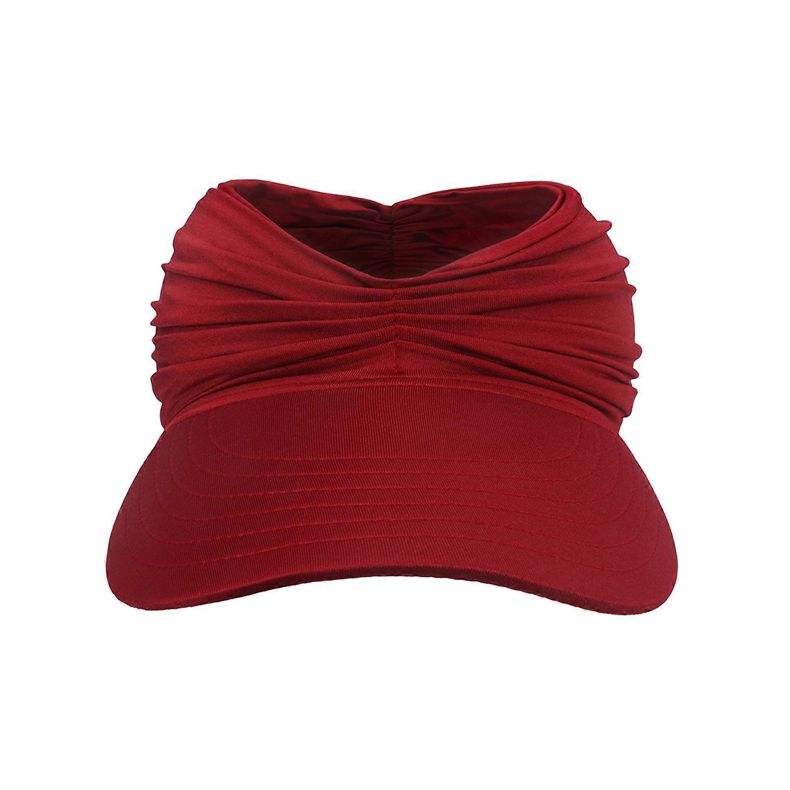 Unisex Solid Color Wide Brim Empty Top Hat Summer Spring Outdoor Visor Cap Adjustable Pleated Hat for Friend Families B Burgundy