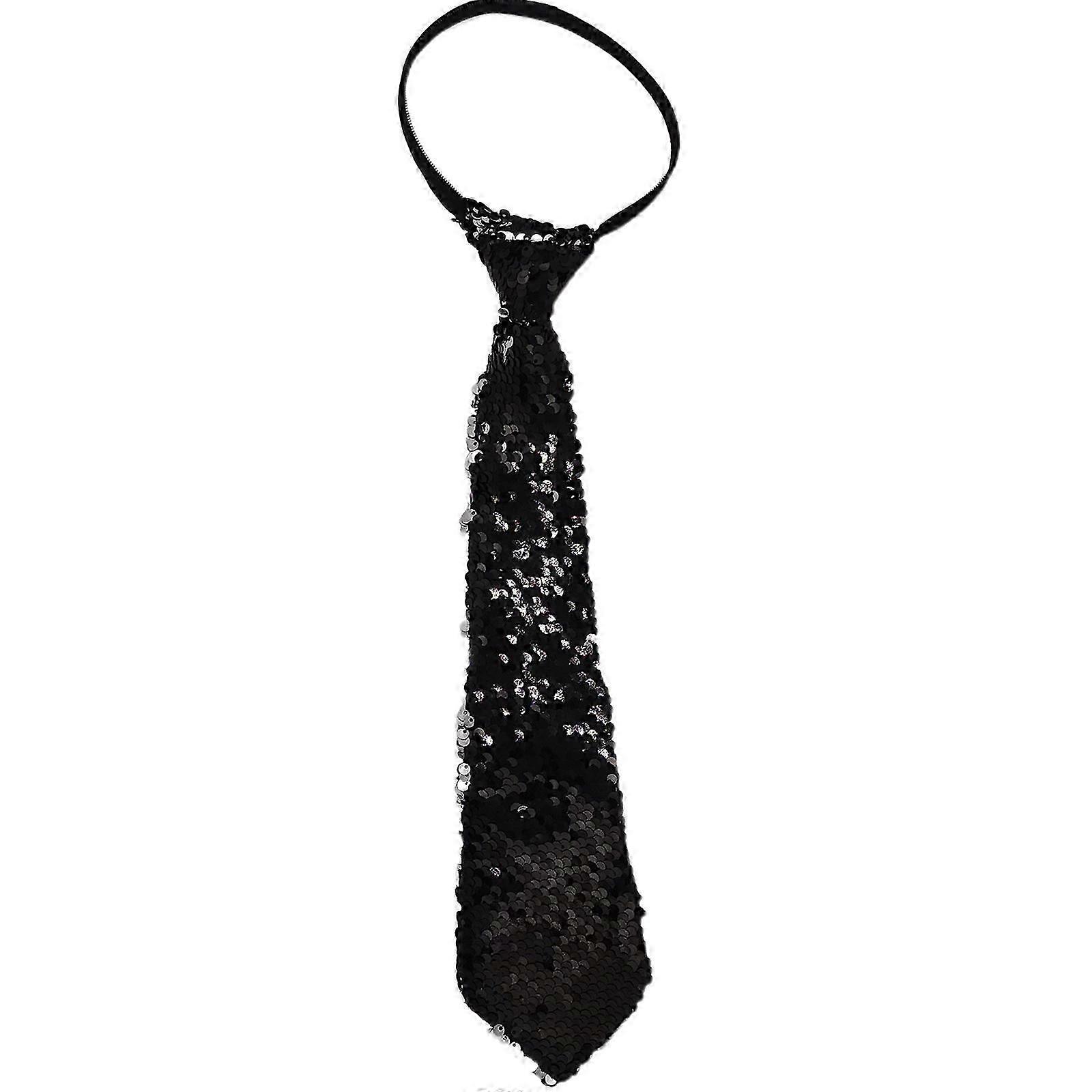 Unisex Pre-Tied Necktie with Adjusted Zippered Sparkly Reversible Sequins Neck Tie for Weddings Graduation Party Costume Silver