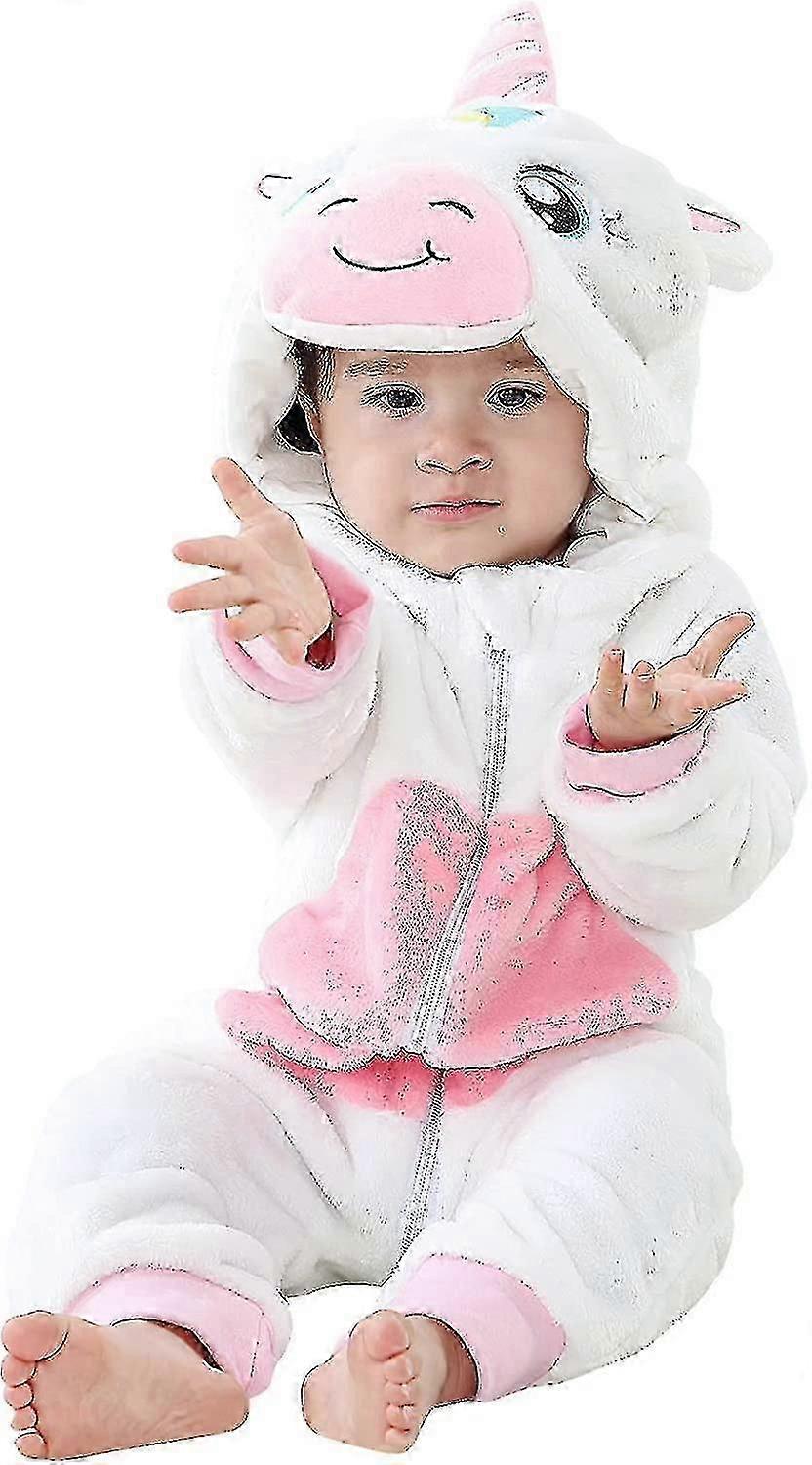Unisex Animal Costume Flannel Hooded Romper Jumpsuit 13 18 Months White