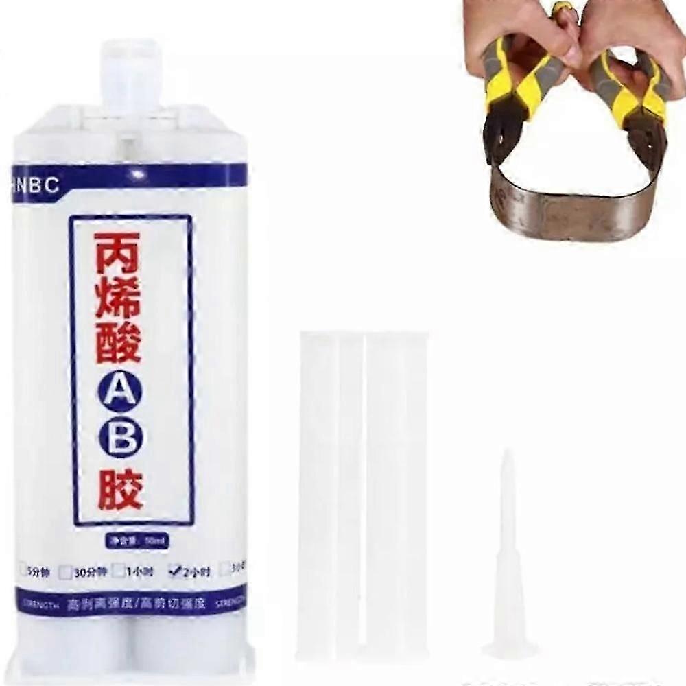 Specifications: Main material: acrylic. Colour: transparent. Mixing ratio: 1:1. Net content: 50ml. Use: metal, ceramics, glass, stone bonding. Shelf life: 12 months. Package Includes: 1/2/3pcs*Universal AB Glue - Weld-Like Durability Note: 1.Due to manual measurement, lighting shooting reasons and the real thing will be slightly different, thank you.