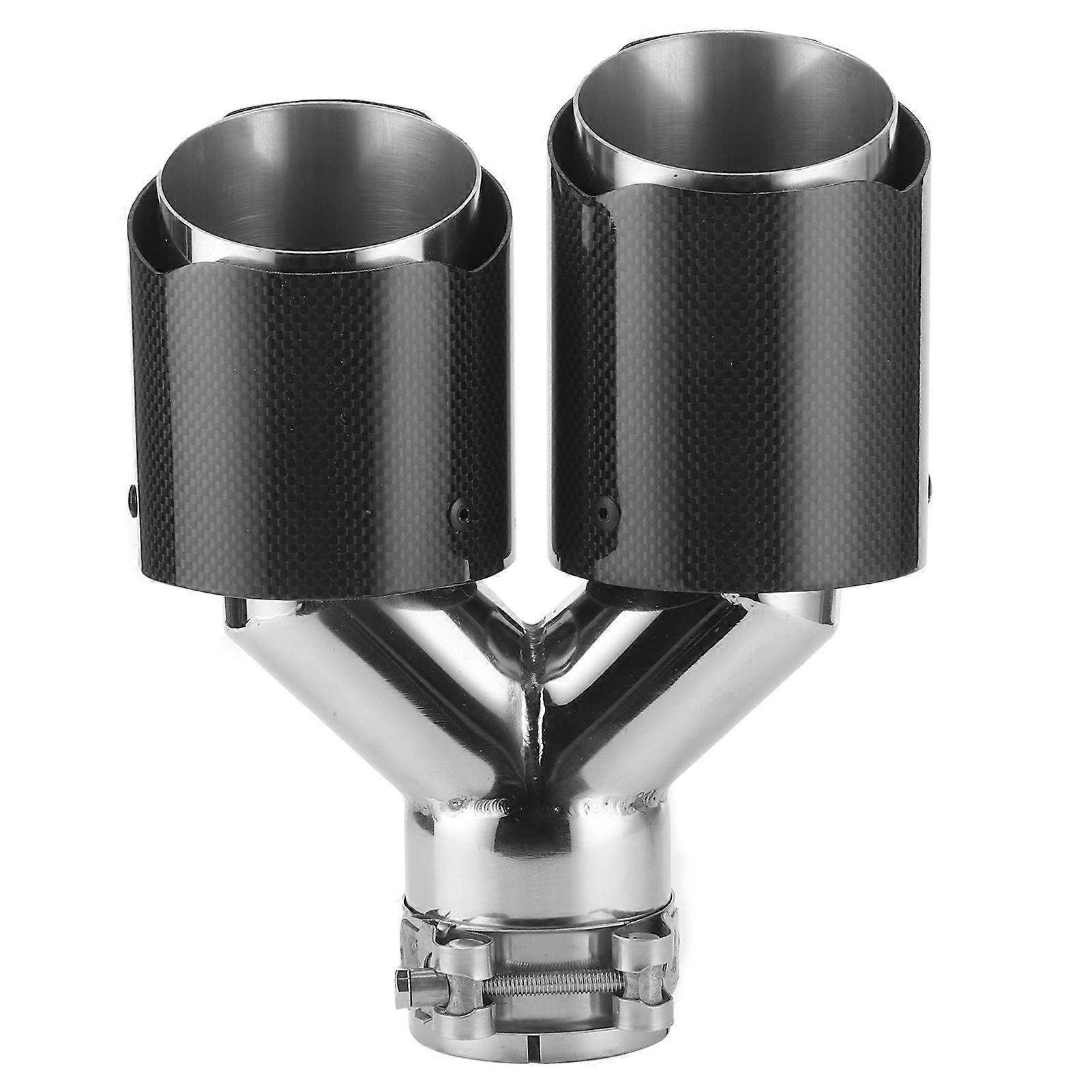 Universal Exhaust Tip Tail Throat Glossy Carbon Fiber Stainless Steel YShaped Dual Outlet E2U111