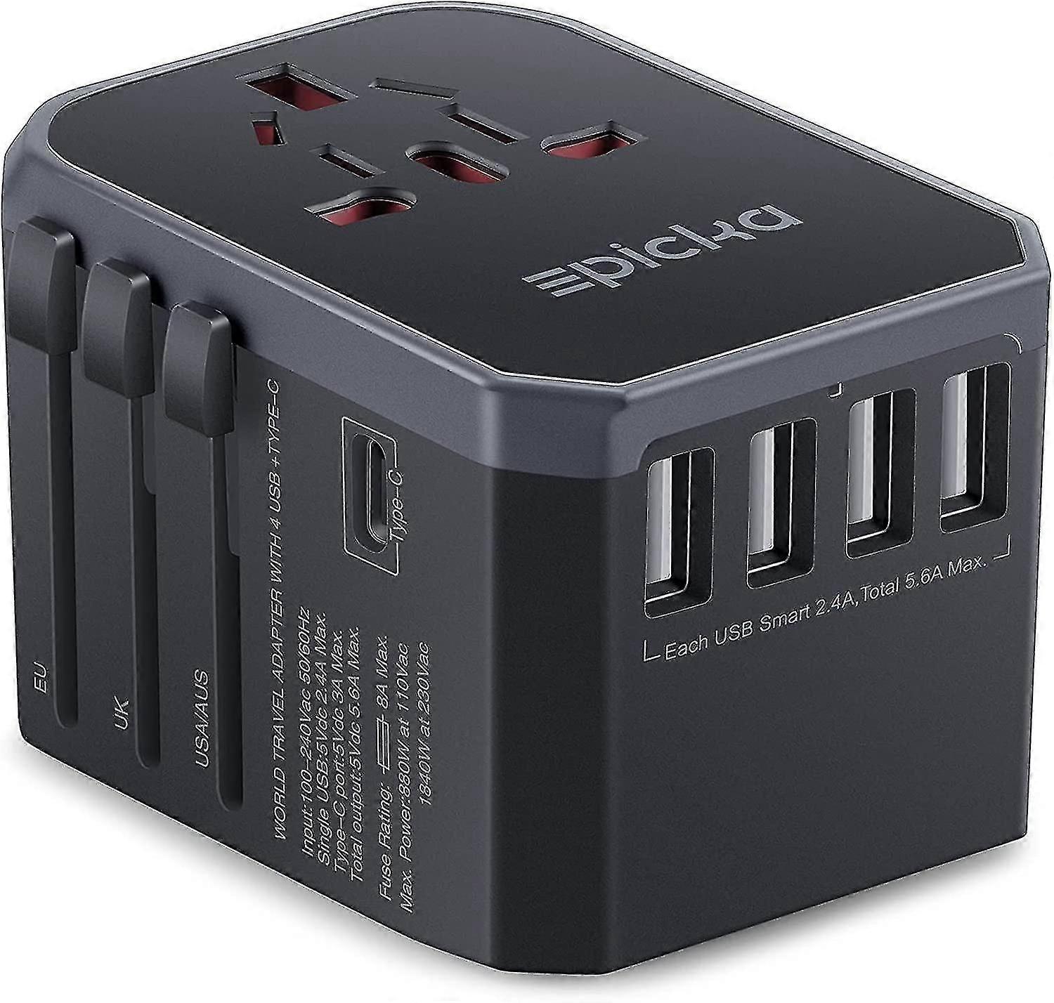 Universal Travel Adapter One International Wall Charger Ac Plug Adaptor With 5.6a Smart Power And 3.0a Usb Type-c For Usa Eu Uk Aus ( Grey ) - Snngv