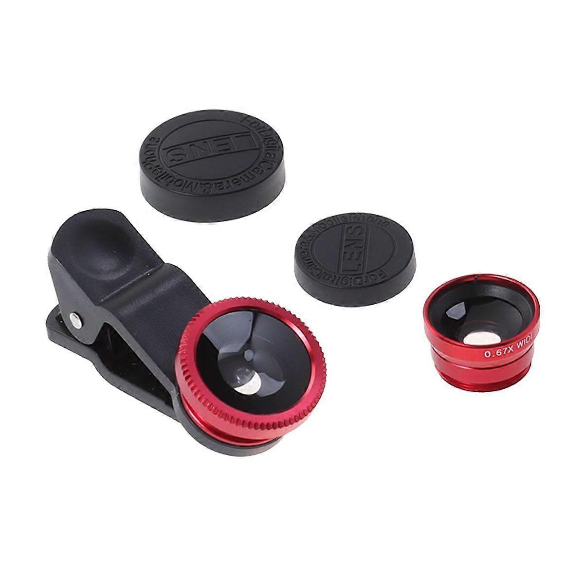Universal Portable Cell Phone Camera Lens Super Wide Angle Lens Macro Lens and Fisheye Lens Clip on 3 in 1 Mobile Phone Lens for 6S/7/8/X (Red)