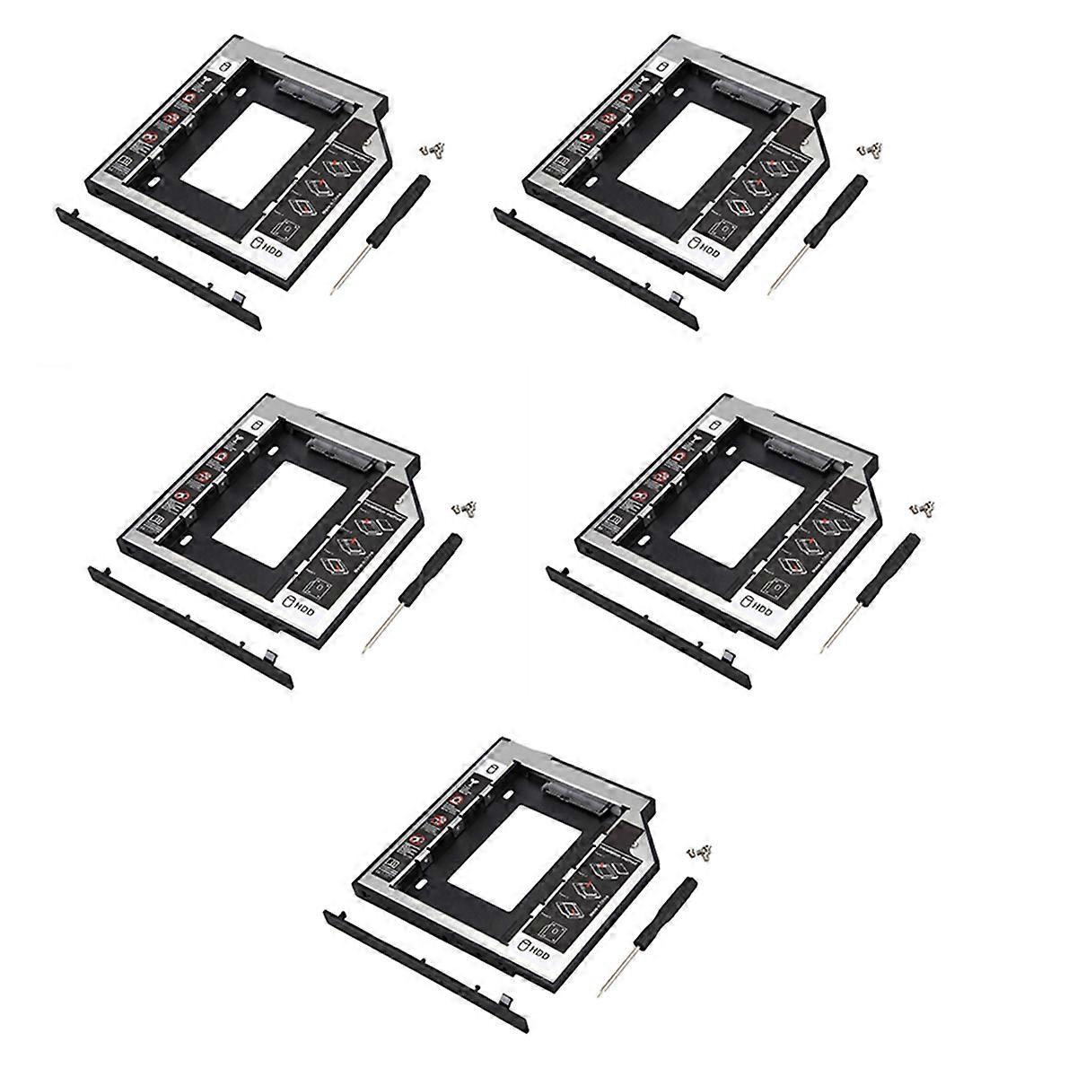and high quality 9.5mm thick This Hard Drive Adapter lets you add a second hard drive to the laptop systems. With a second hard drive, you can quickly store and back up critical data. Add this to your laptop to give you another hard drive. Simply remove your CD/DVD-ROM drive and put the (with the added hard drive) in its place This is a good working adapter and is guaranteed. Unpack the drive, lift the adapter retaining latch, the screw to the hard disk Insert into the Adapter at an angle Slide into the connector until it locks into place Lower the adapter retaining latch until it snaps closed Case Material: Aluminum Size: 2.5 inch, 3.5 inch Internal Interface: SATA Model Number: 2nd Hard Drive Support: SATA Support hard disk: 2.5 HDD, SATA, SATAII Compatible Models: Laptop with a 9.5mm thick DVD-ROM Color: black Size: 125*125*9.5mm Specifications: Hard Drive Adapter Add a second hard drive Can quickly store and back up critical data Give you another hard drive Simply remove your CD/DVD-ROM drive A good working adapter Package Contents:5 * SSD Hard Disk Bracket Only the above package content, other products are not included. Note: Light reflection and different displays may cause the color of the item in the picture a little different from the real thing. The measurement allowed error is +/- 1-3cm.