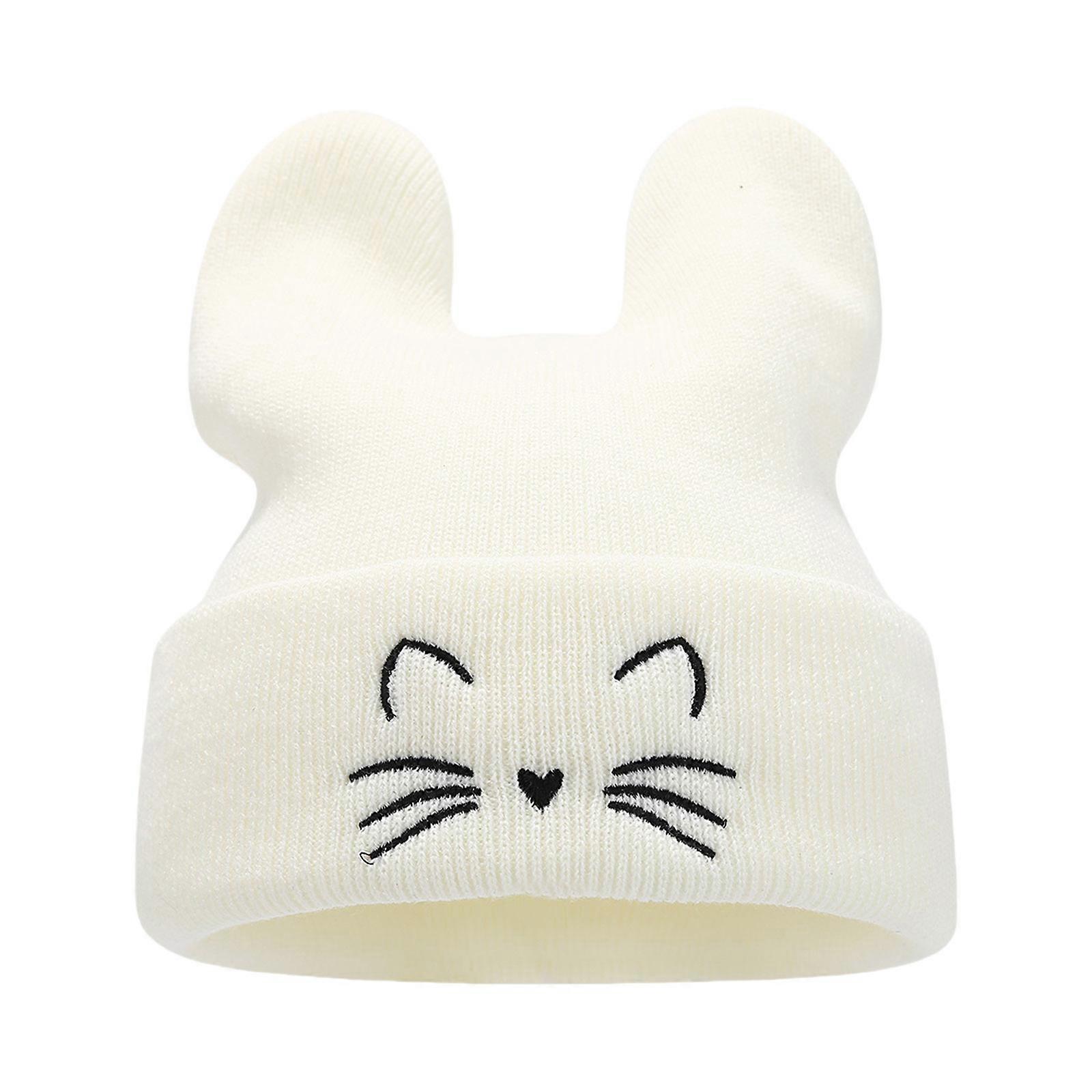 Unique Knit Hat Embroidered Kitten Winter Hat Pullover Casual Streetwear Beanies Photo Props Women Men Breathable Caps White