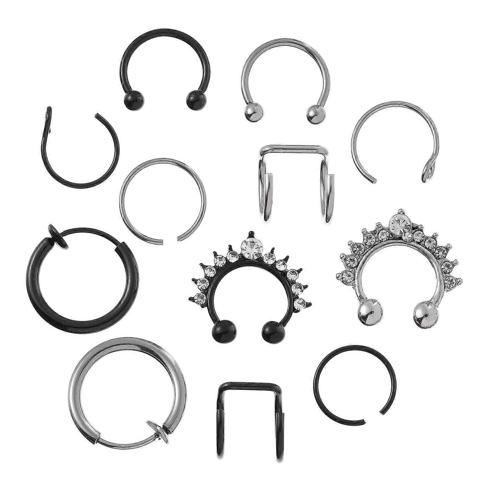 The product is a set of nose piercings jewelry. Perfect accessory and decoration for piercing art lovers, make you more fashion and cool, fully showing your special taste and personality. You will be attractive and charming among the crowds. Features - Color: Silver. - Material: Stainless Steel. - Size: 2.50X2.00X0.30cm/0.98X0.79X0.12in. - Made of , sturdy, durable. Used as nose piercings rings and earrings. - Fully showing your special taste and personality. A wonderful you and your friends. - Perfect accessory and decoration for piercing art lovers, make you more fashion and cool. - Unisex design, suitable for both men and women. Suitable for wearing outdoor to have a party, take photos. - They can be given as your . They will be very happy. Package list: 12 x Nose rings