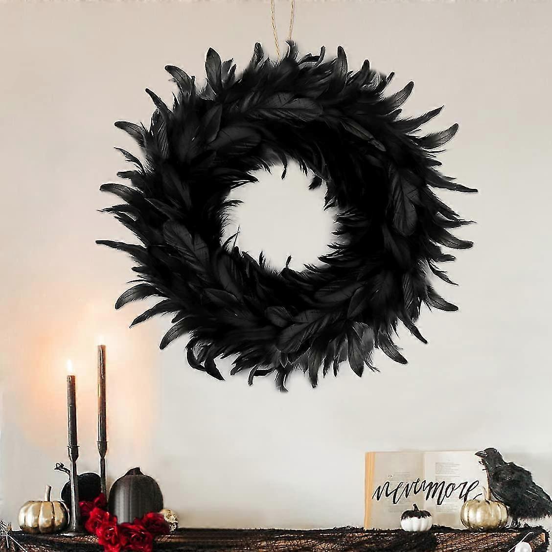 unique Halloween Door Wreath,black Feather Wreath,front Door Wreath,hanging Halloween Decoration For Outdoor Porch Mantel Fireplace Window Indoor Wall