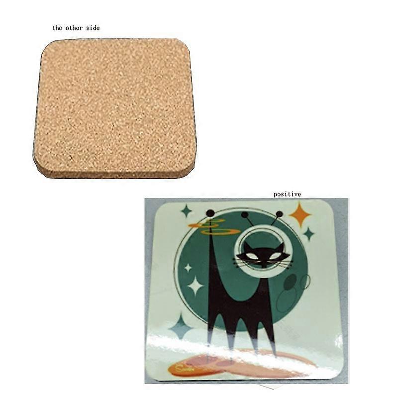 Unique Mid Century Modern Atomic Space Cat Wooden Coaster - Protects Surfaces from Scorching Hot Beverages with Soft, Non-Slip, and Absorbent Cork Mat