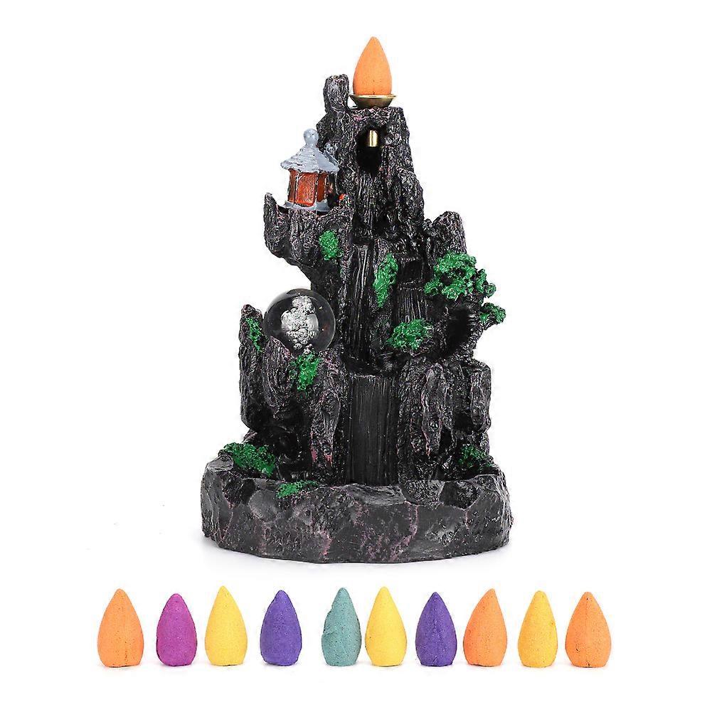 Unique Mountain Water Backflow Incense Burner Holder Home Resin Ornament Craft with LED Ball YEMAA