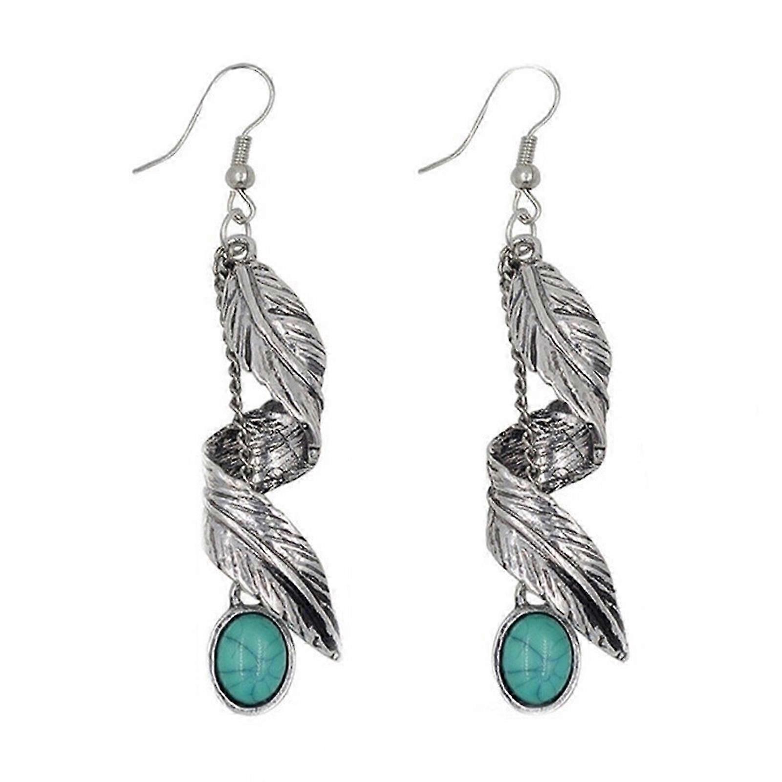 Unique Leaf Shaped Dangle Earrings Bohemian Style Eardrops with Green Stone Colorful Ear Pendants Fashionable Jewelry