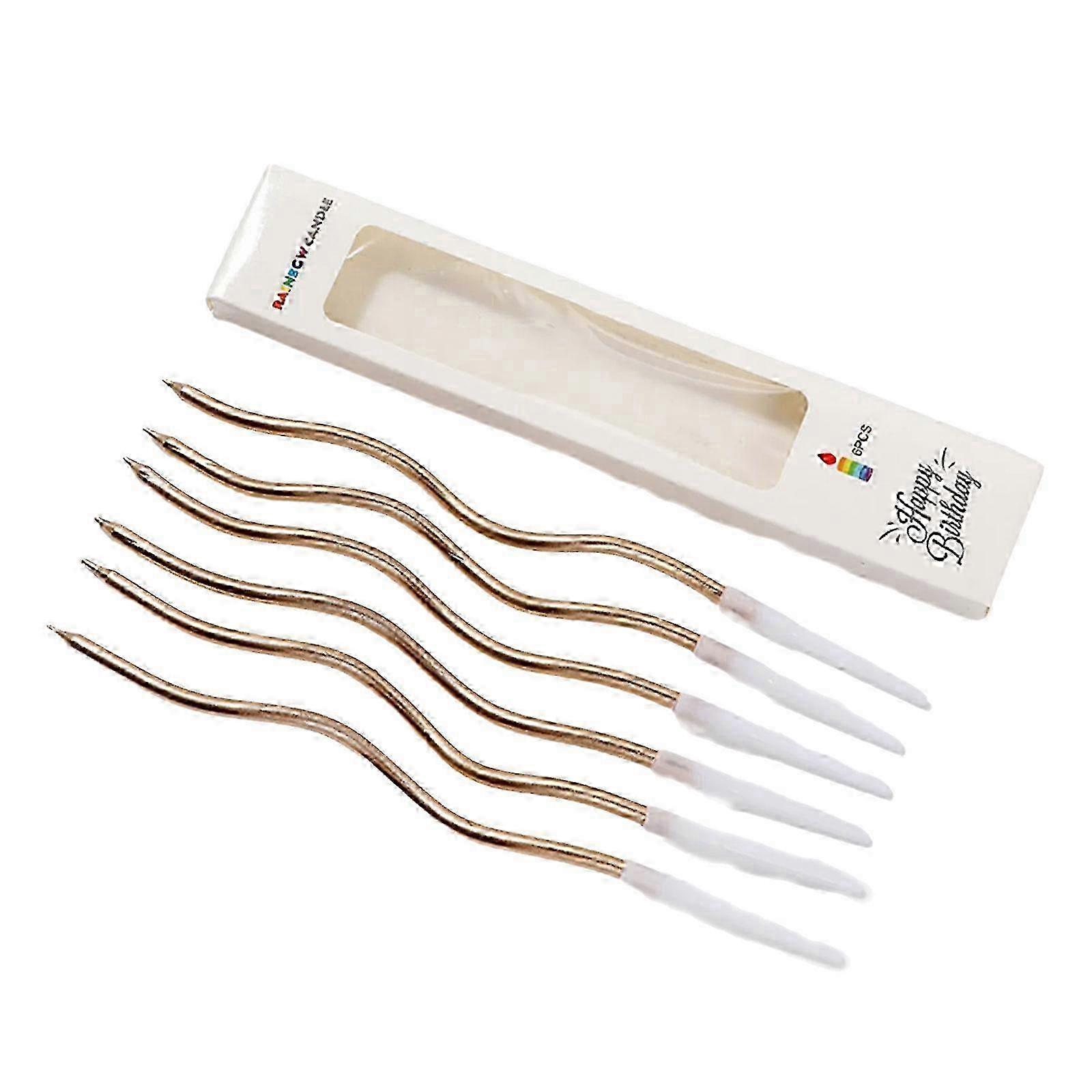 6Pcs Attractive Curved Gold Plated Cake Candle for Unique Birthday and Celebration Cake Decoration Accessories