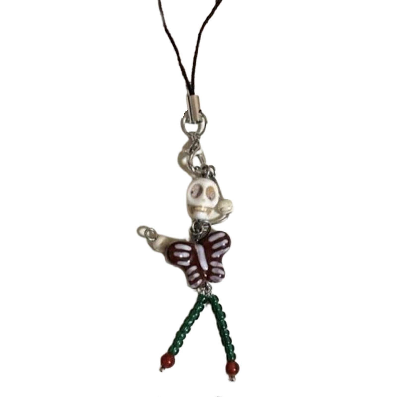 Unique Skull Butterfly Beaded Necklace Funny Skeletone Phone Charm Lanyard Funny Keychain Choker Women Girl Jewelry