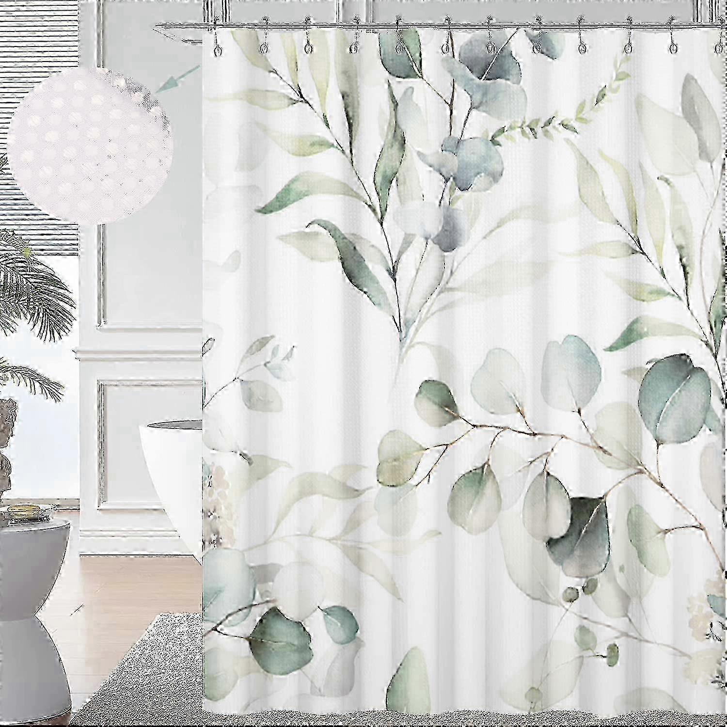 Eucalyptus Leaf Shower Curtain, Botanical Watercolor Botanical Bathroom Curtain Tub Home Decor Waterproof Fabric Machine Washable with 12 Hooks